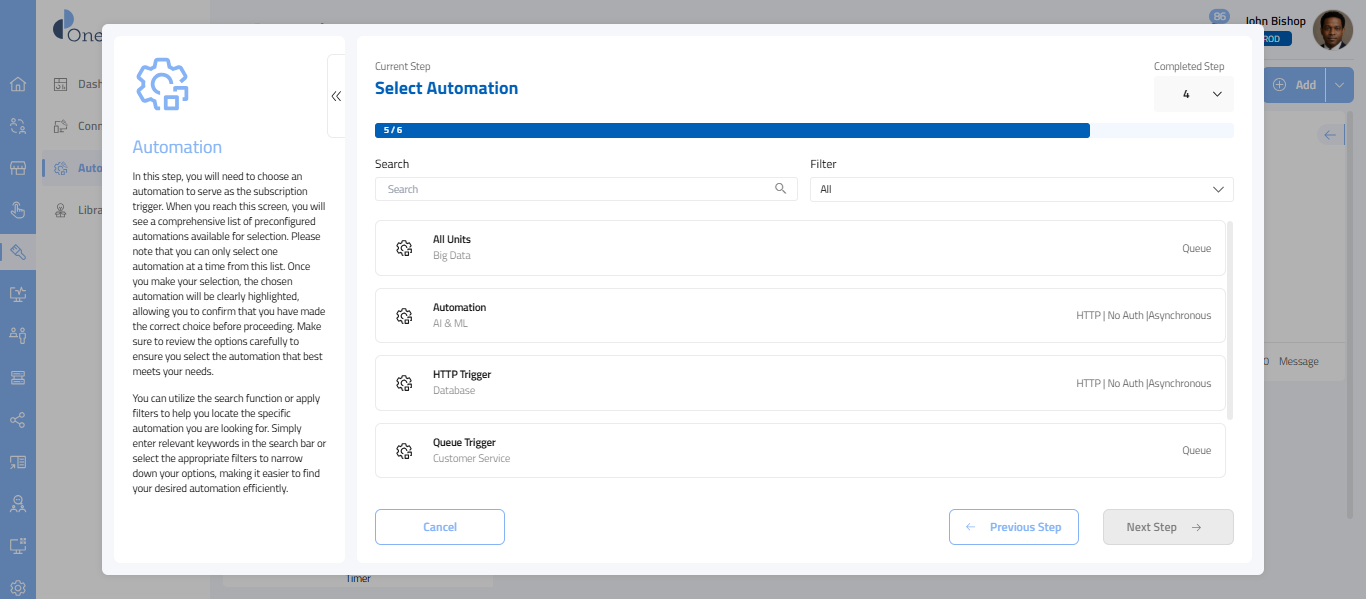 - The screen provides the list of automations that are already configured. Select the Automation from the list.