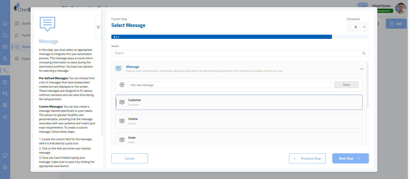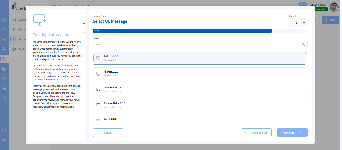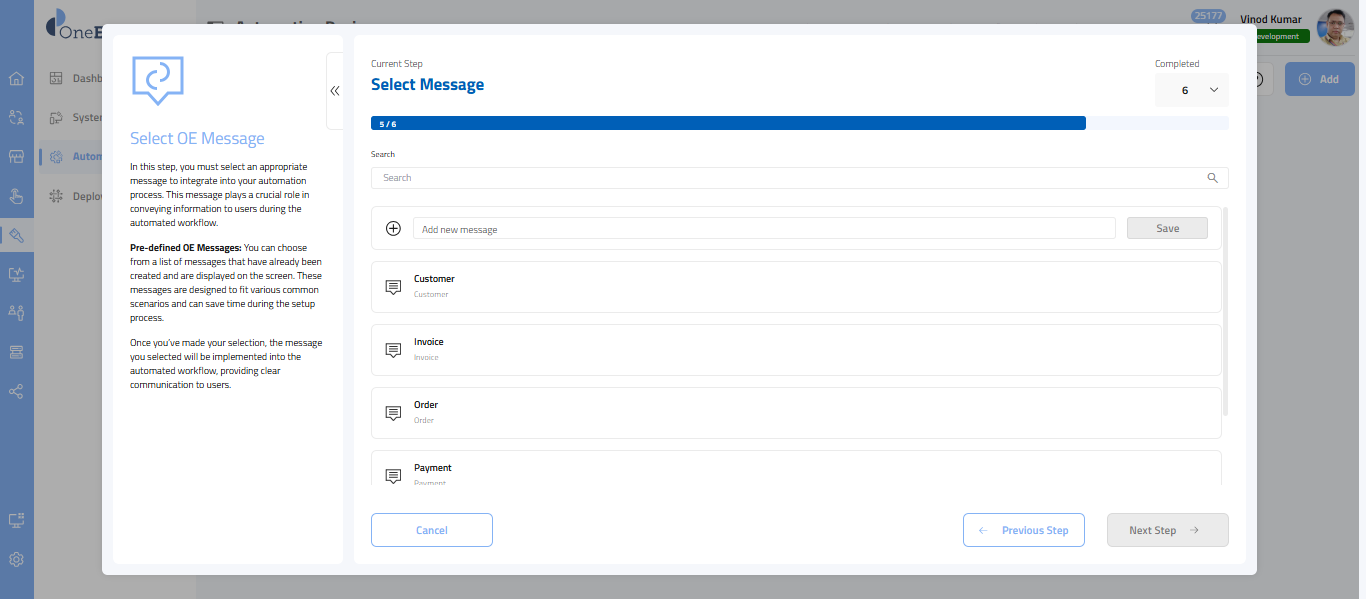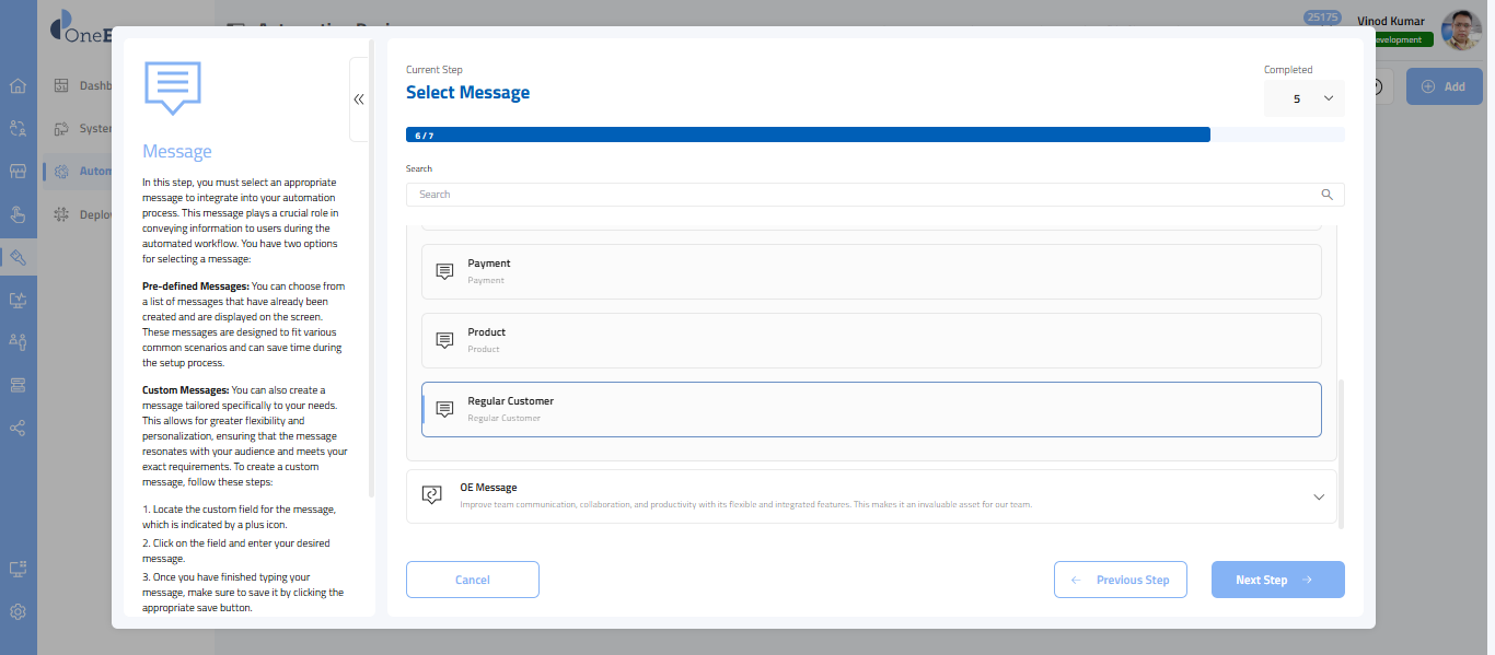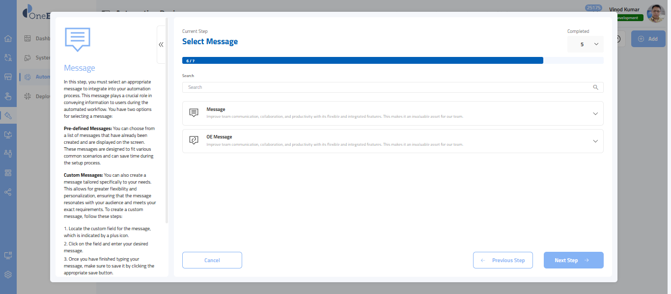 - In this step, you’ll choose the message provided by the OneEnterprise.