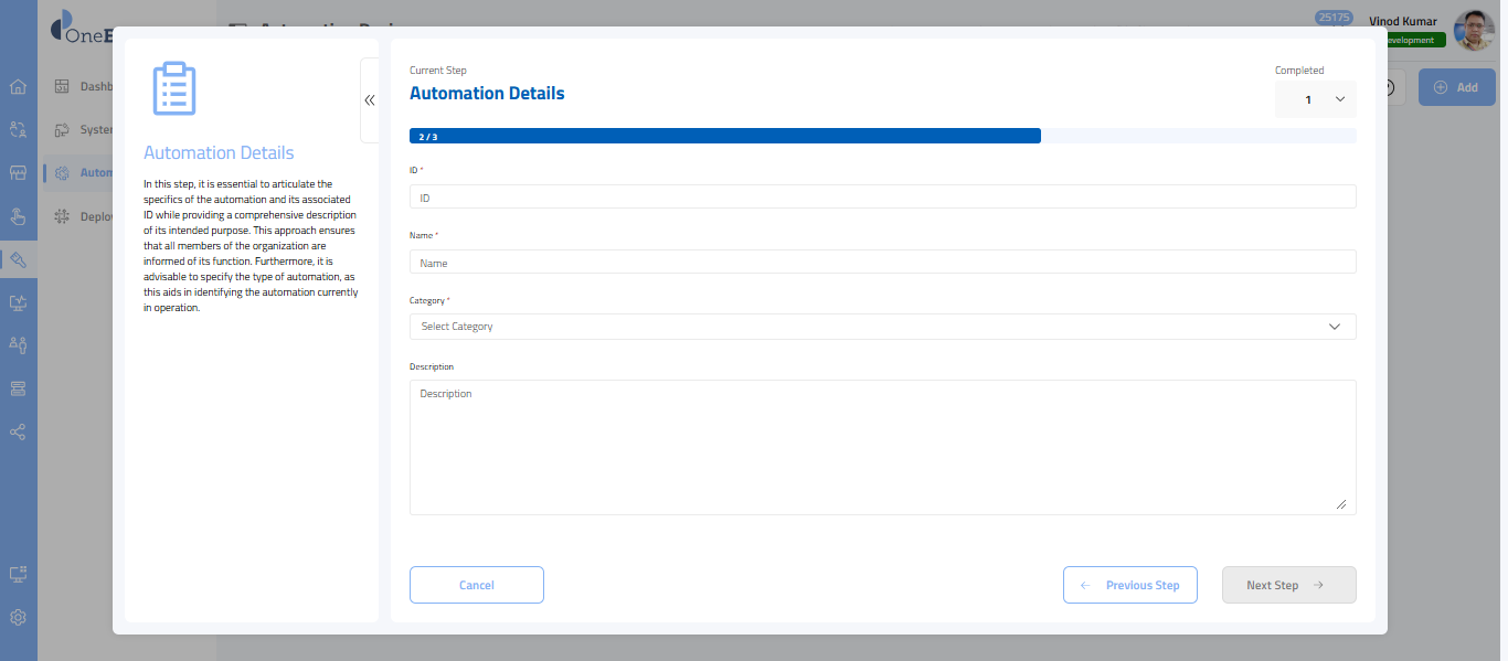 - Please enter the automation ID of your choice in the designated field.