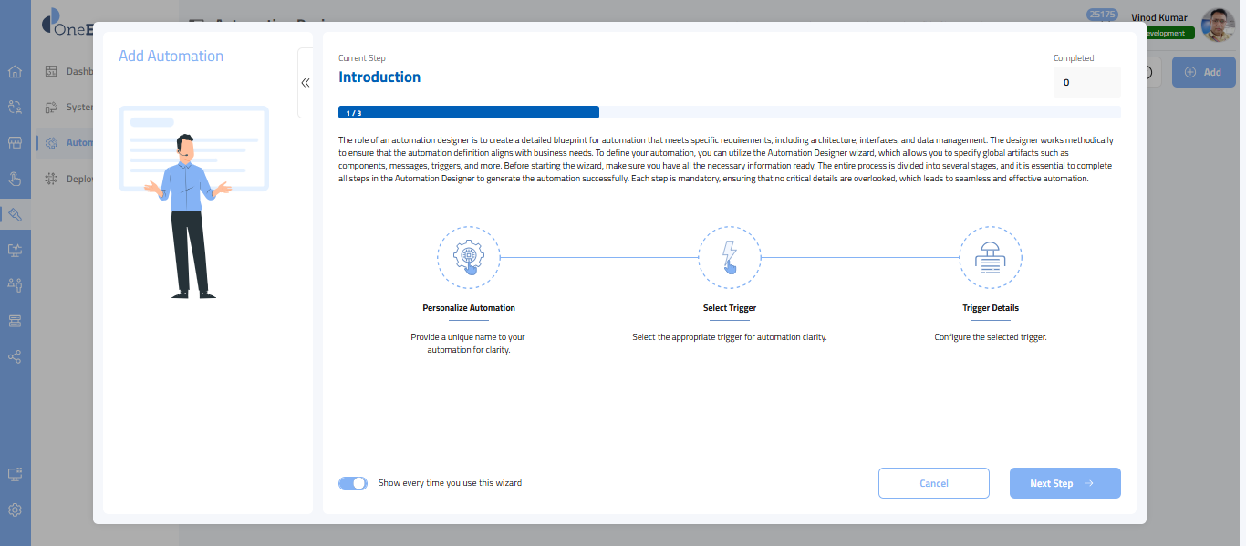 - The screen provides an overview of the automation wizard, helping you understand what is ahead.