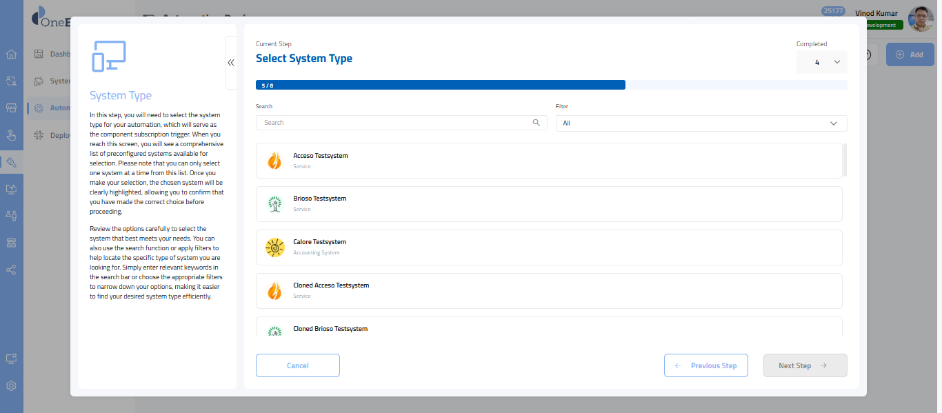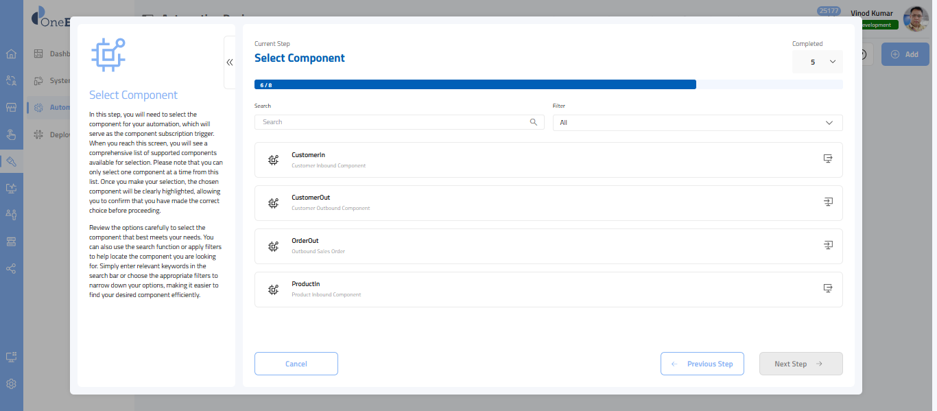 - On the top right corner, you will find the Completed drop-down, which lists all the completed steps. Since you haven't completed any steps, "0" is displayed. Completed steps will be added to the drop-down as you progress through the wizard. To return to a previously completed step, select it from the drop-down menu.