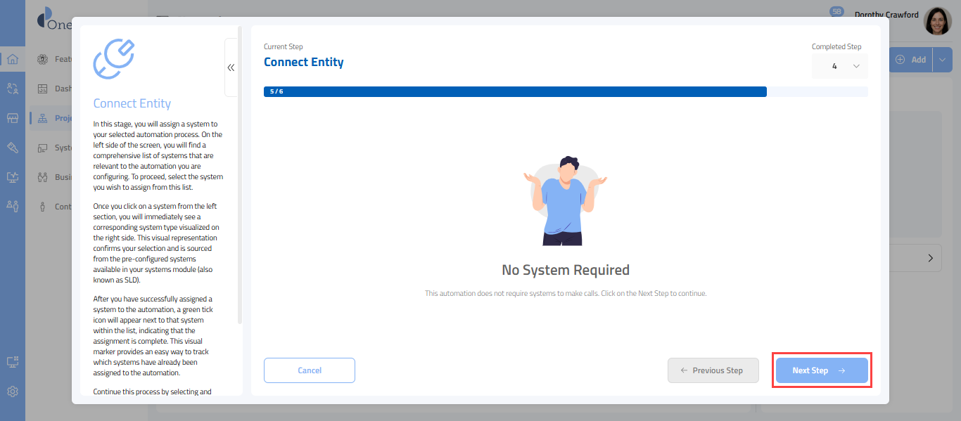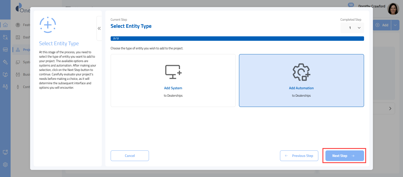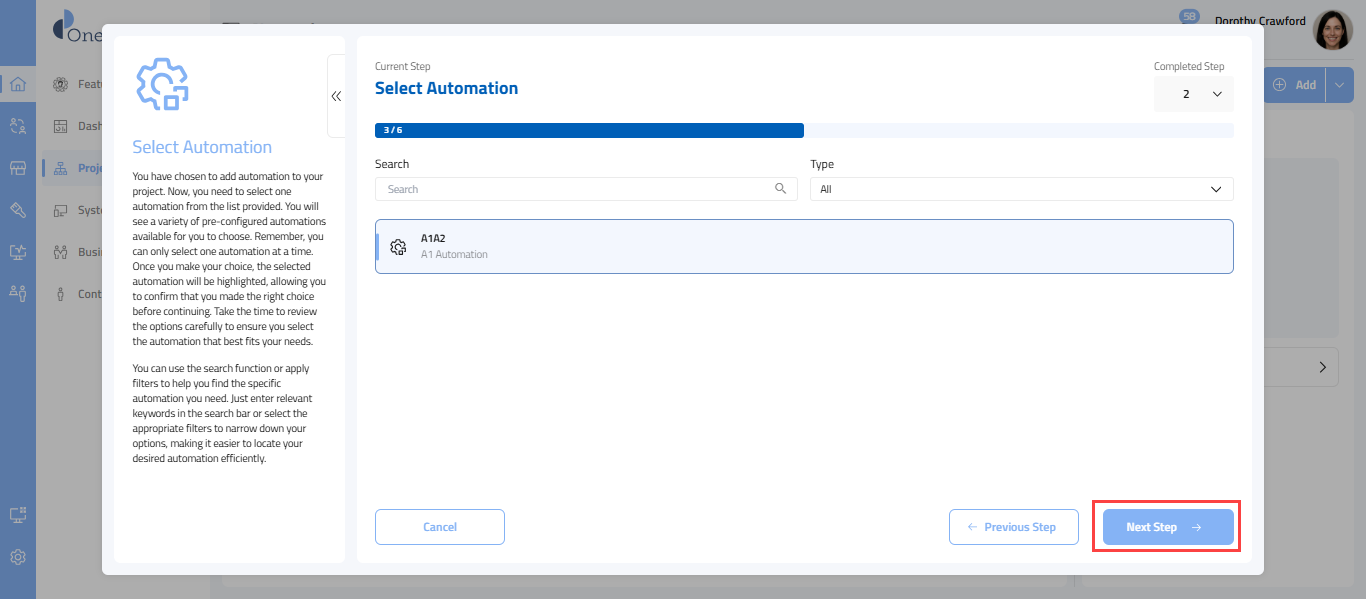 - The 'Next Step' button is disabled by default, but will be enabled once you select an automation.