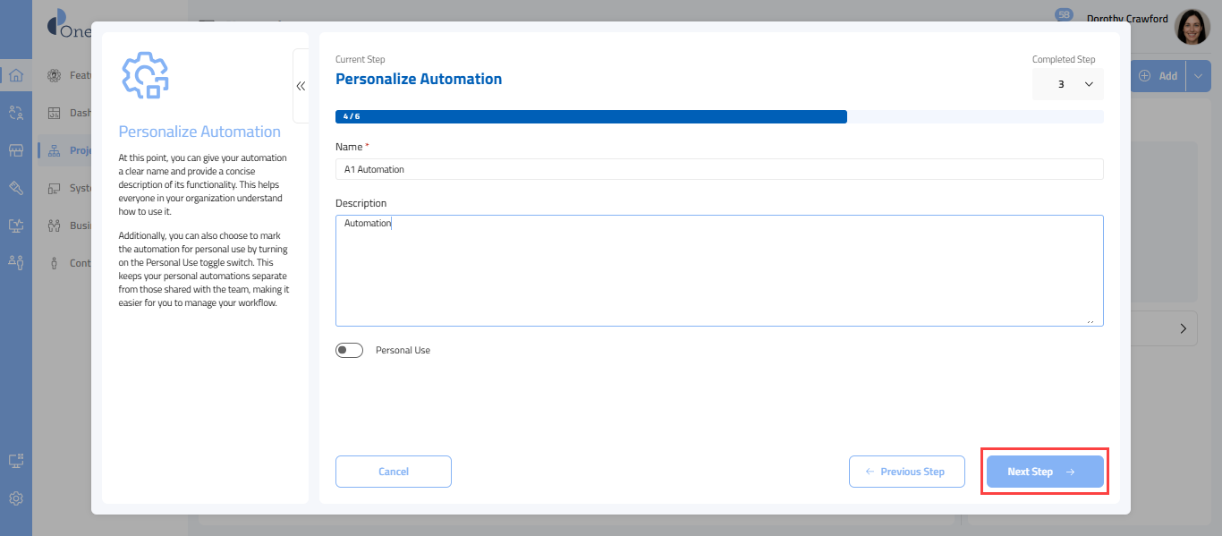 - In this step, you can personalize your automation by providing the name and description of your choice.