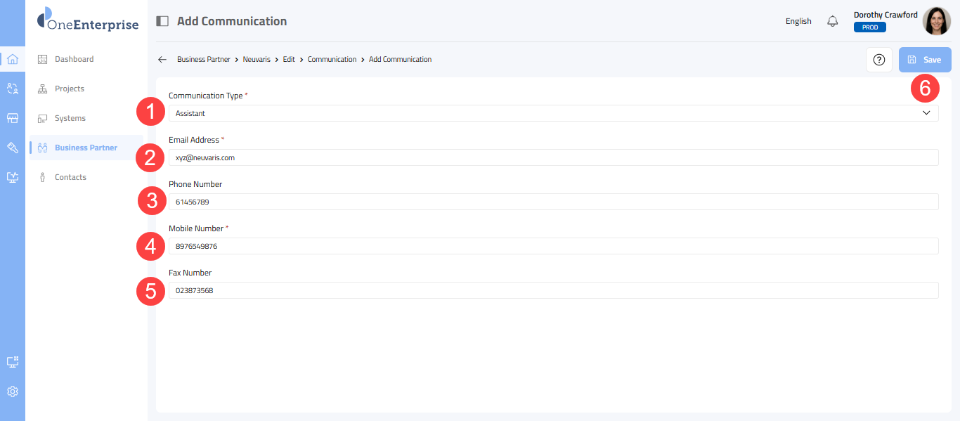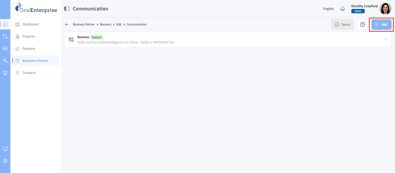 In this section, you will find a comprehensive and easy-to-follow guide on how to add communication details for your business partner. These details will be displayed on your business card and represent your official communication. You can add multiple communication methods for your business and select one as the default. This guide will walk you through each step to ensure you don't miss any critical details. It provides information on how to add Business Partner Communication.