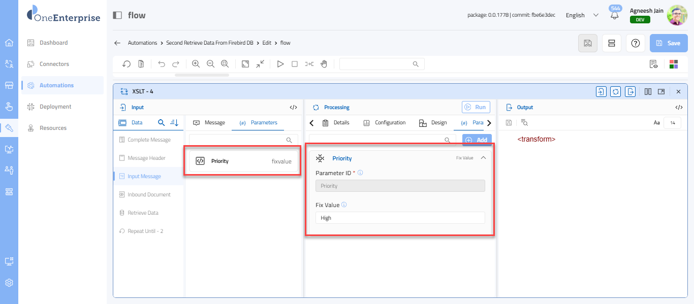 - The parameter gets added to the section. In the example below, the fixed value parameter type is selected.