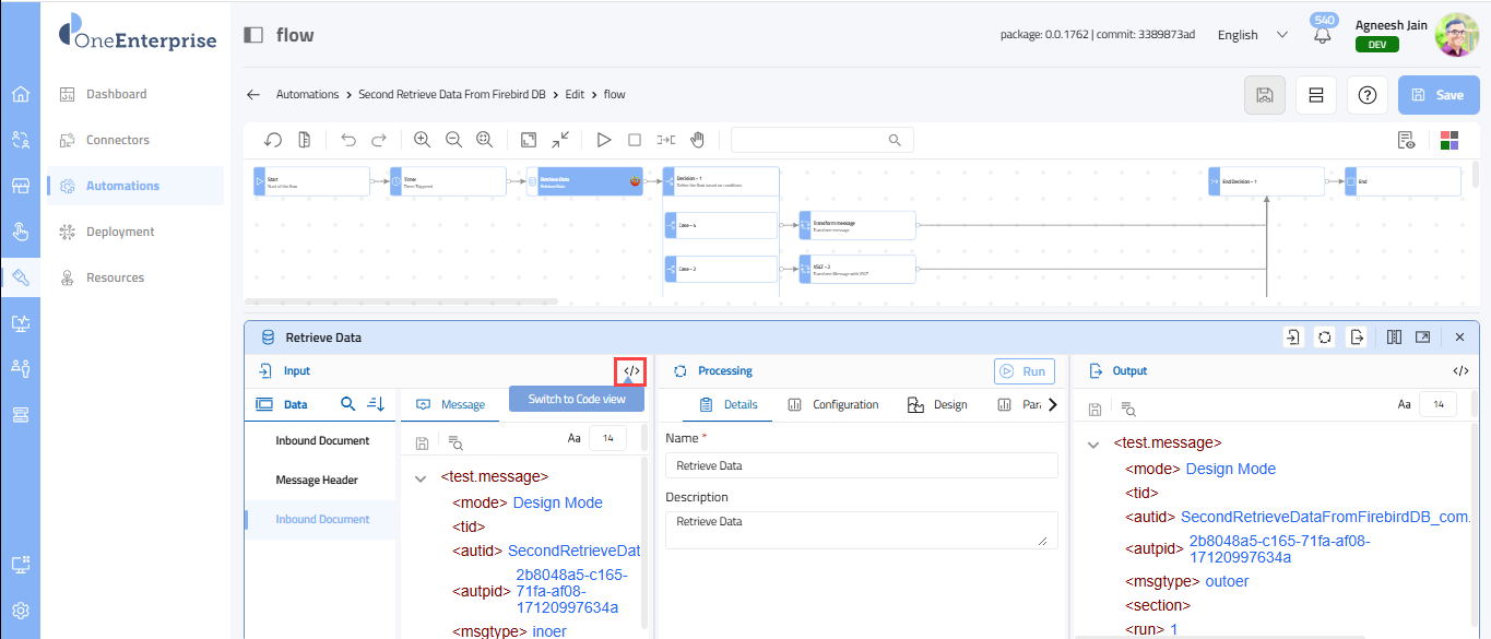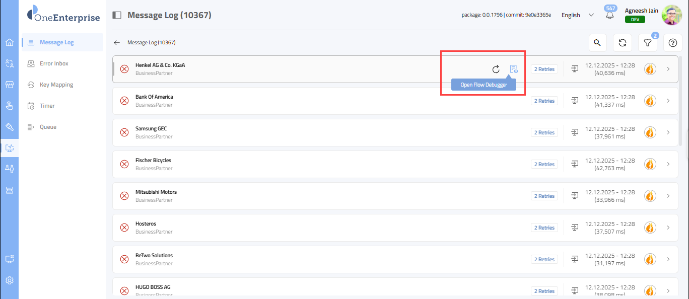 - Clicking on this icon will open the flow debugger screen, which provides a comprehensive interface for analyzing the error messages associated with the specific message you are investigating.