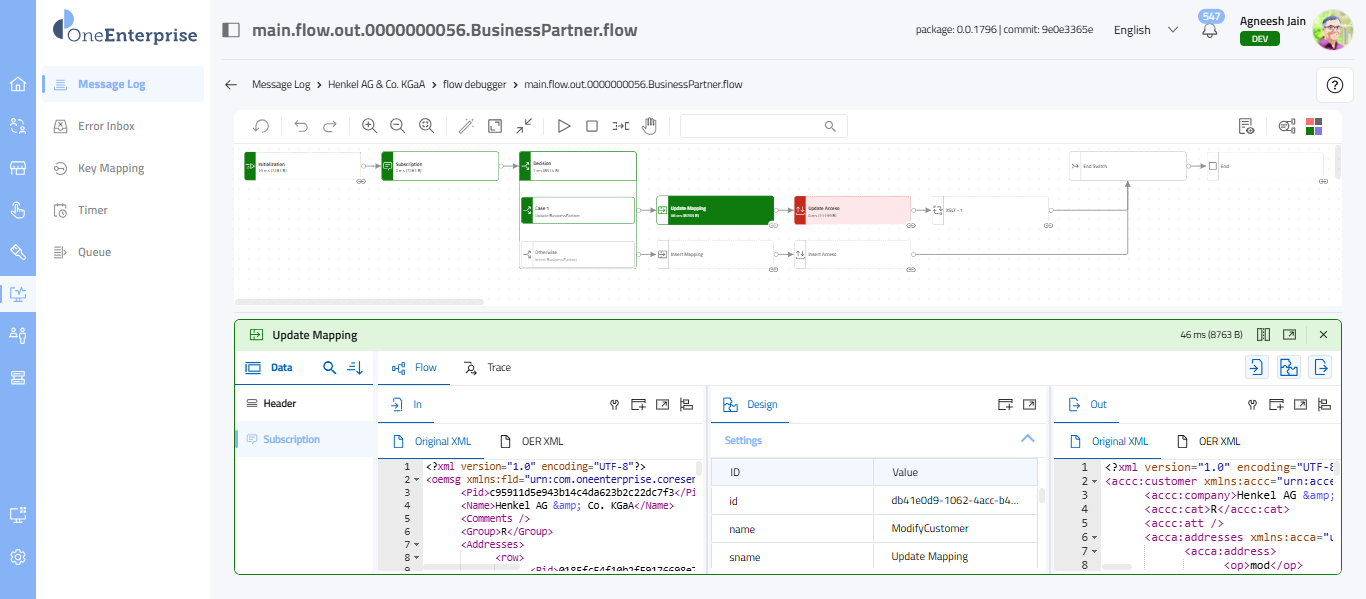 The Flow Debugger in OneEnterprise is an integral feature of Flow Designer, facilitating testing and troubleshooting of flows before deployment. This functionality allows you to execute a flow sequentially, enabling a comprehensive examination of the data at each stage and helping you identify and effectively rectify potential issues.