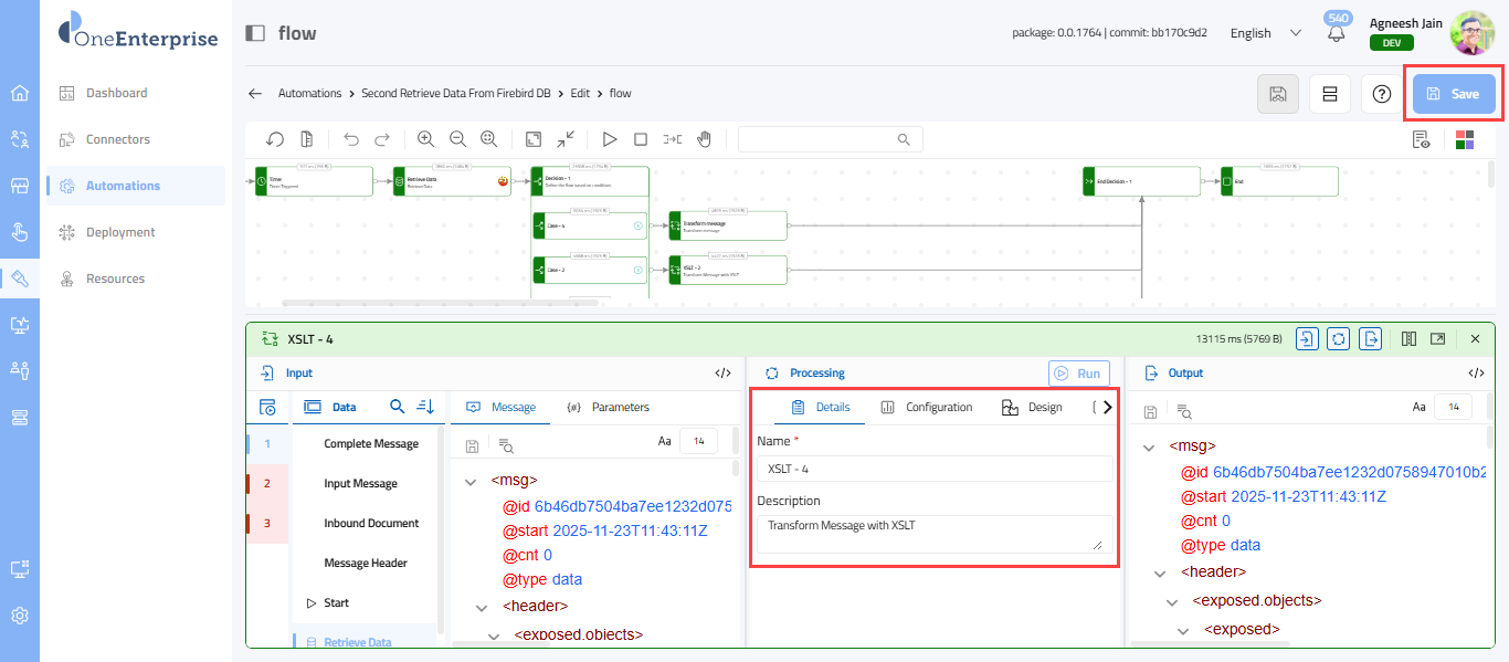 - You can modify any parameter in the message and click the Save button to save the changes.