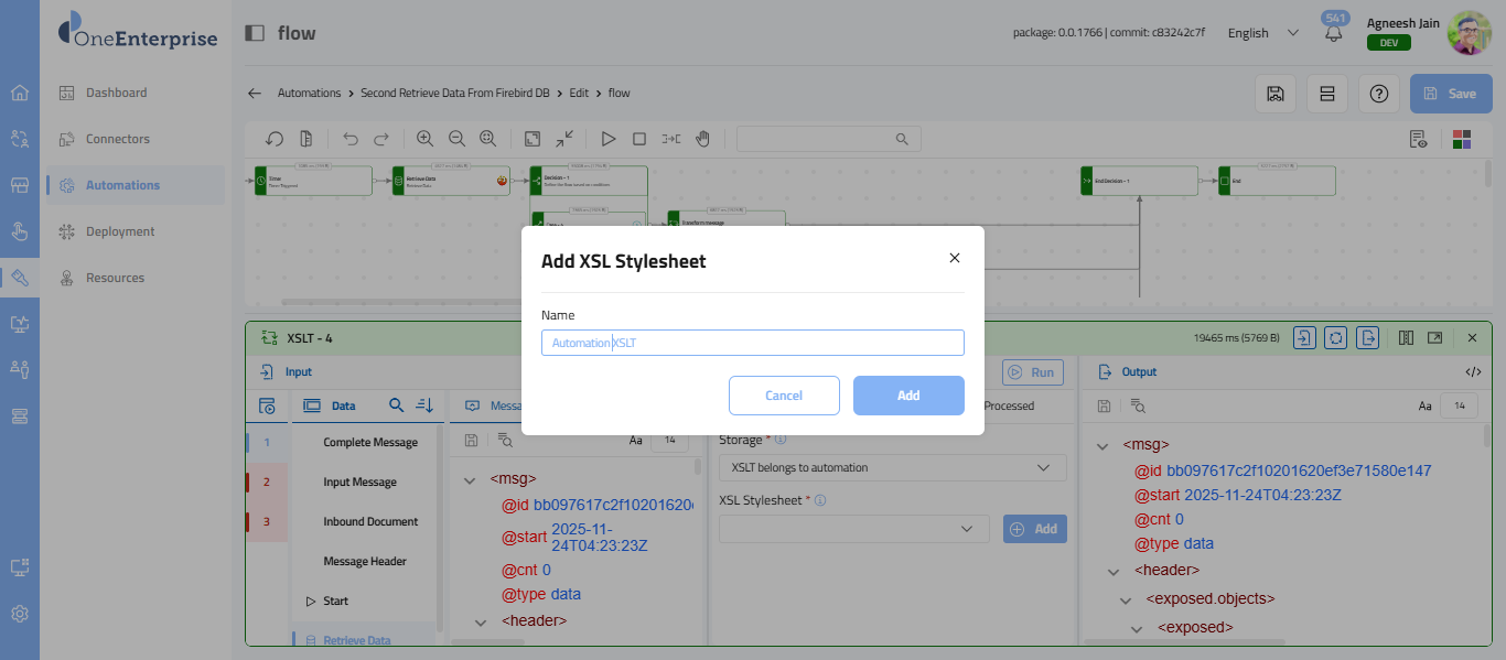 - The Storage field lists the XSLT storage location where the files have been stored.
