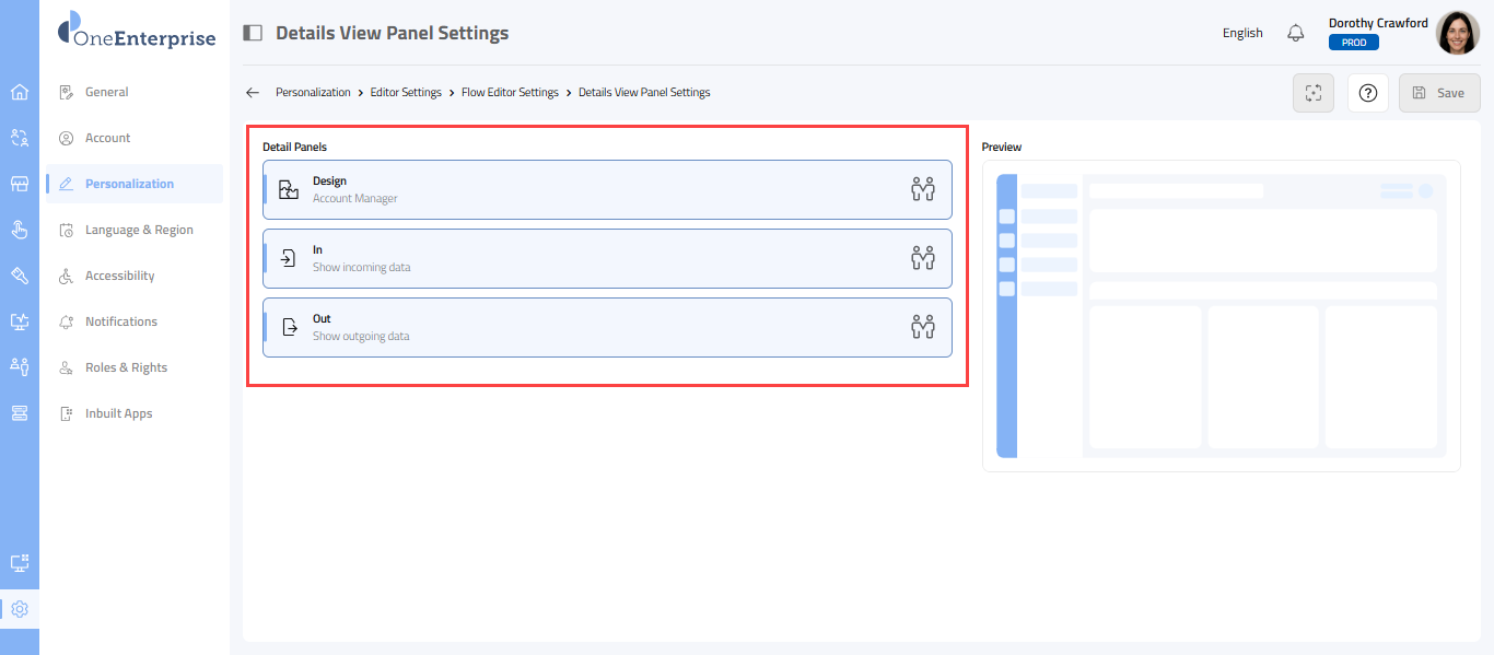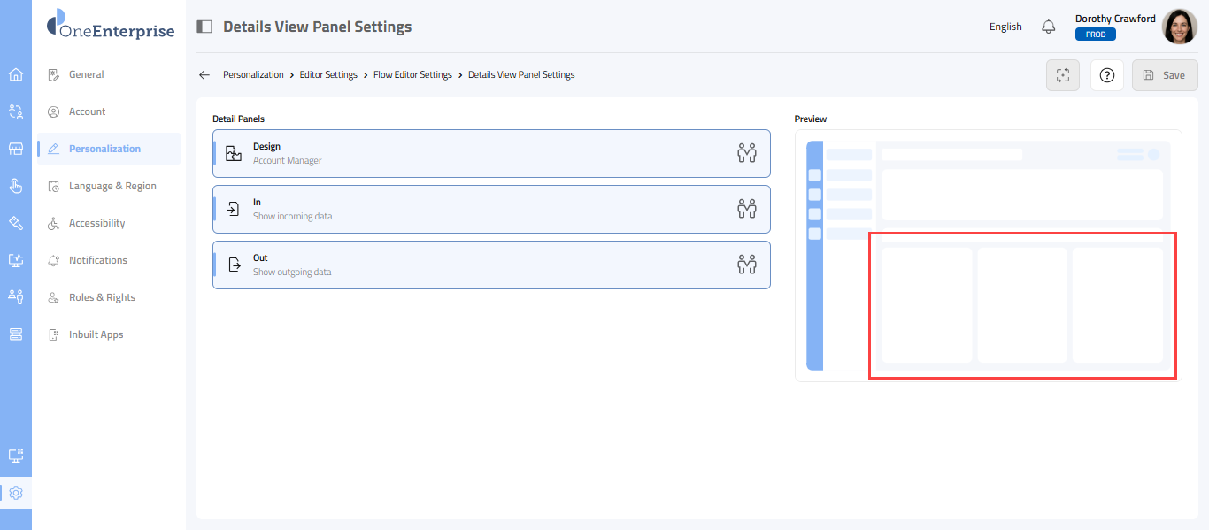 Navigation: Settings > Personalization >Editor Settings >Flow Editor > Details View Panel Settings