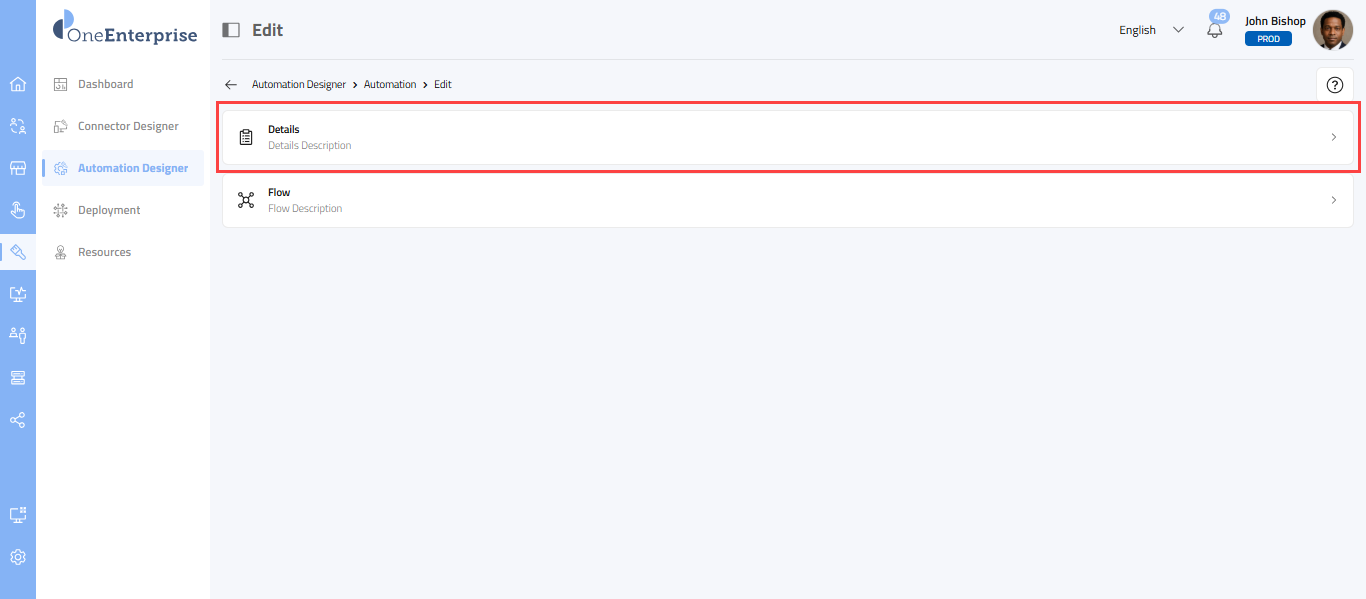 Overview The flow editor feature in OneEnterprise enables users to visually modify and refine automation workflows through an intuitive interface. This functionality permits direct interaction with the structure of an automation, allowing review of ...