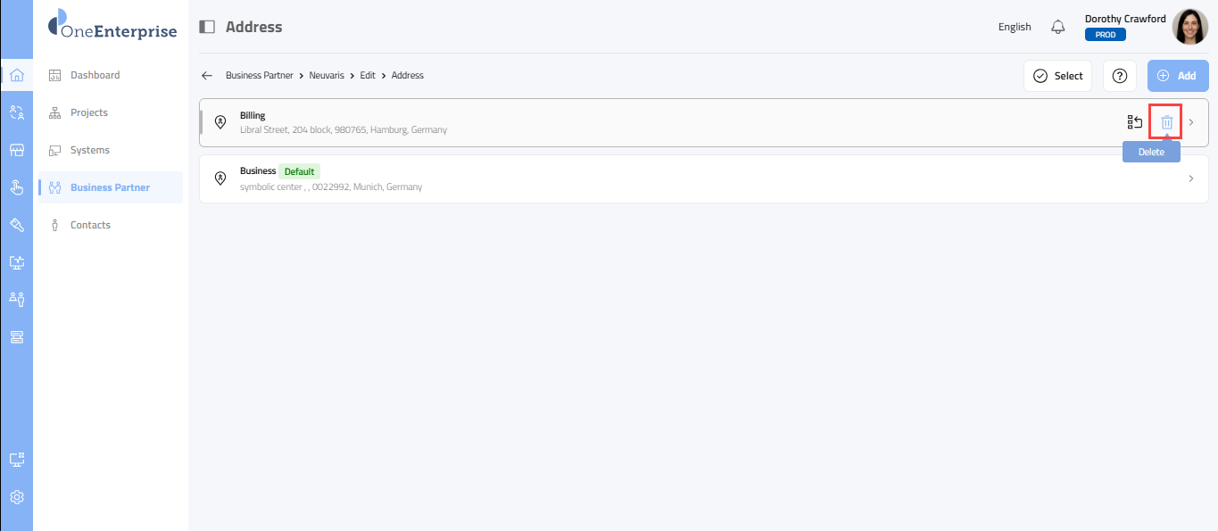 Please note that you cannot delete the address marked as the Default address. If you want to delete that address, first assign another address as the Default, then proceed to delete the original address.