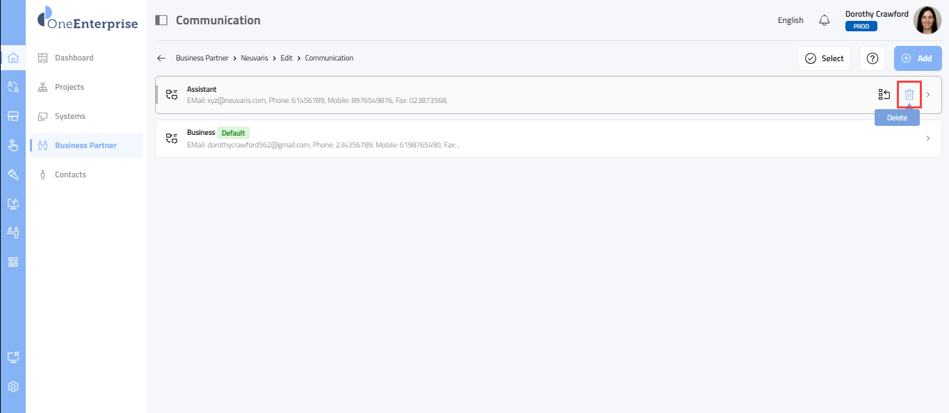 Please note that you cannot delete the communication marked as the Default communication. If you want to delete that address, first assign another communication as the Default, then proceed to delete the original communication.