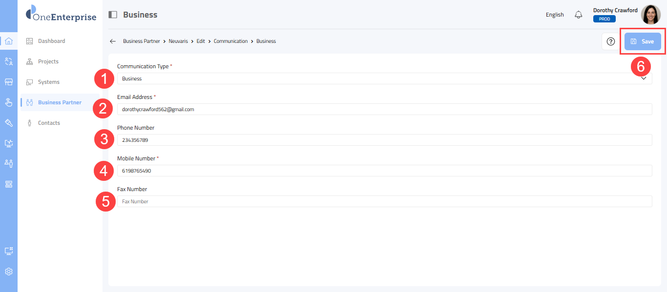 Overview In this section, you will find a comprehensive and easy-to-follow guide on how to add communication details for your business partner. These details will be displayed on your business card and represent your official communication. You can ...