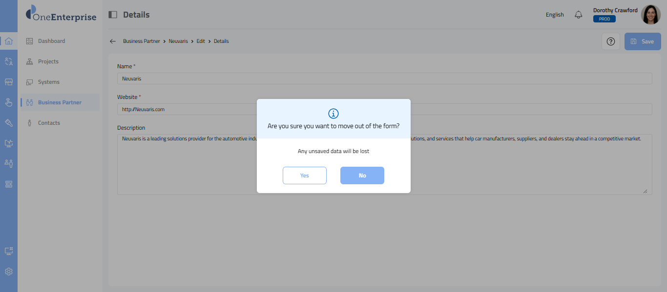 - When you try to exit the screen without saving your changes, a pop-up will appear seeking confirmation.