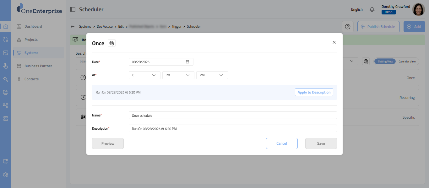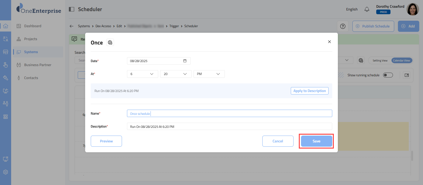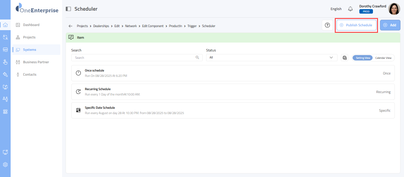 - The Publish Schedule button allows you to publish a schedule that you have configured. The designed schedules will be active and running only once they are published.
