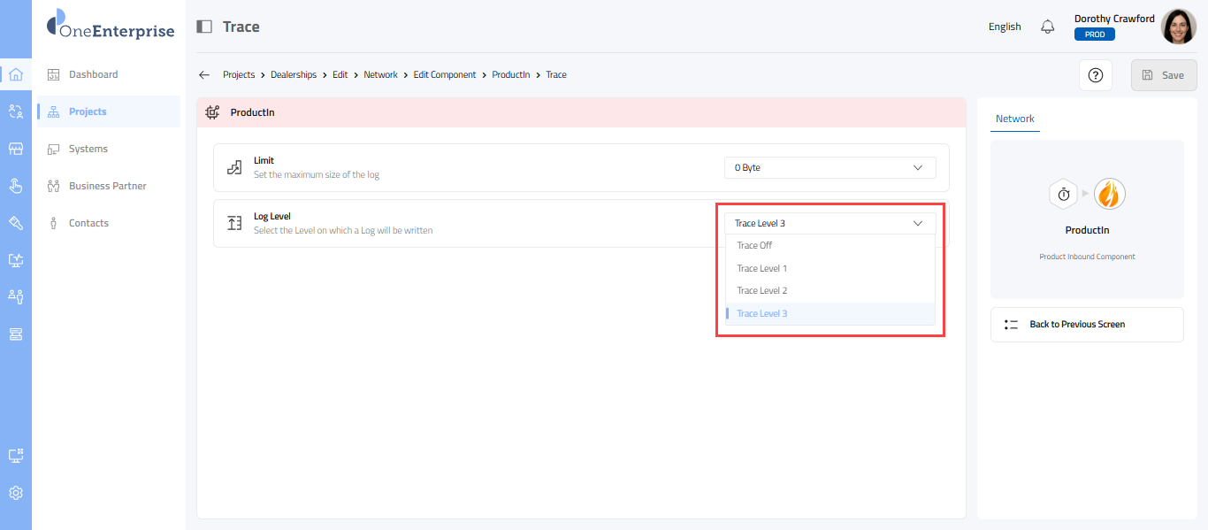 - A drop-down menu is available to set the log levels, and the following log levels are supported: