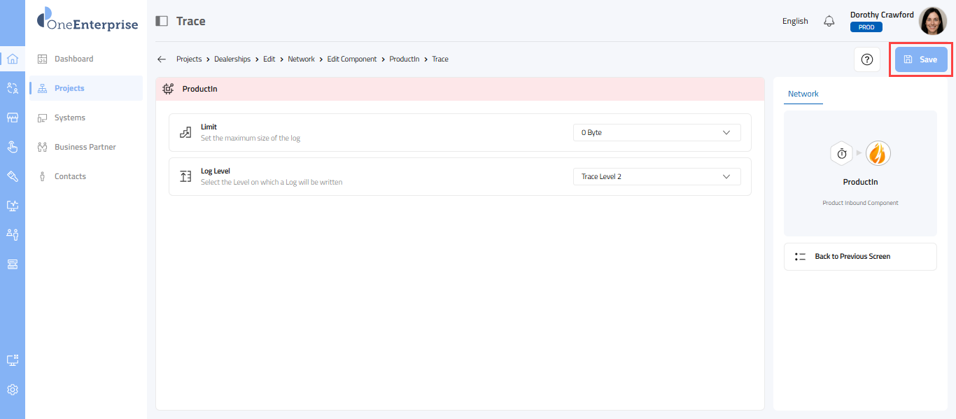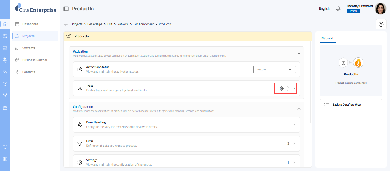 - A toggle switch is incorporated within the band to enable or disable the trace function. When Trace is enabled or disabled, the configuration is saved automatically, and a notification message is presented to the user.