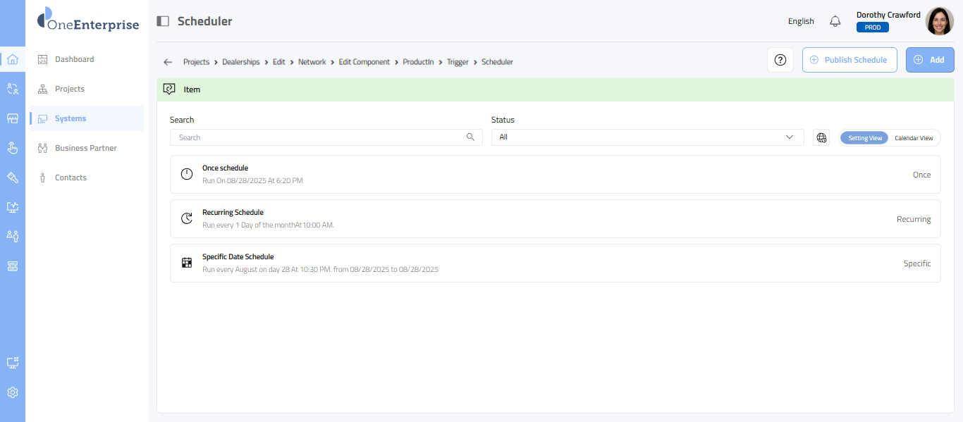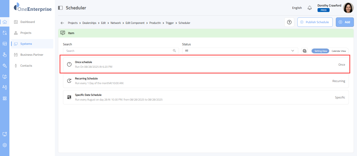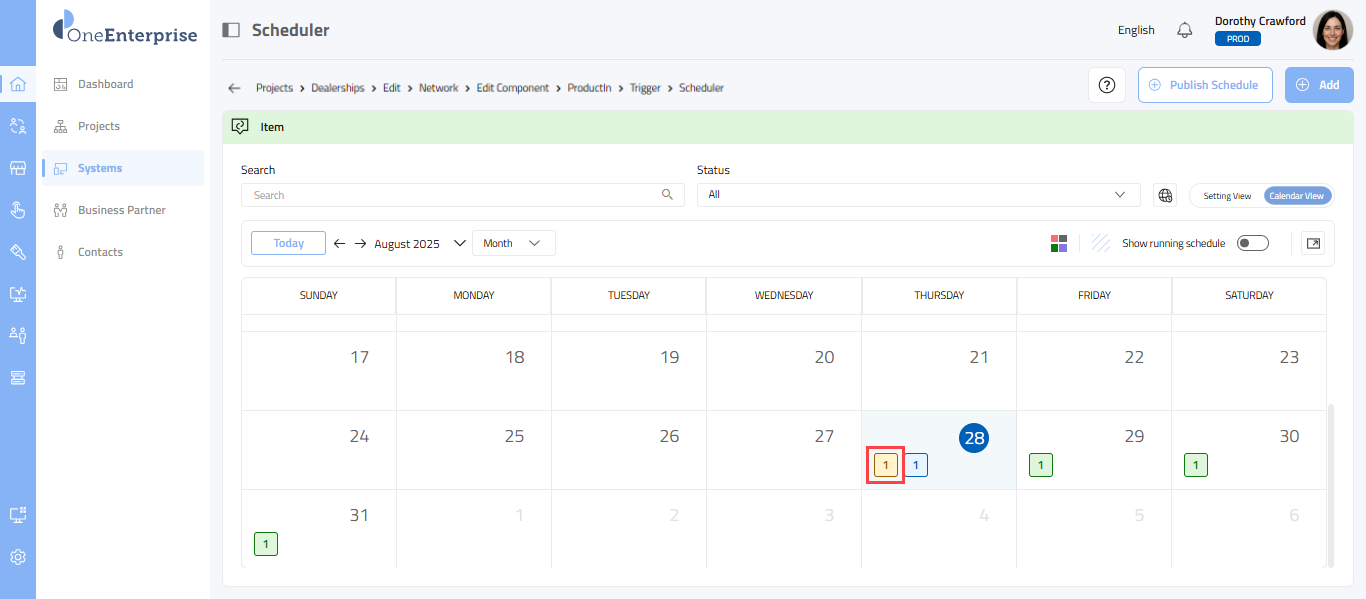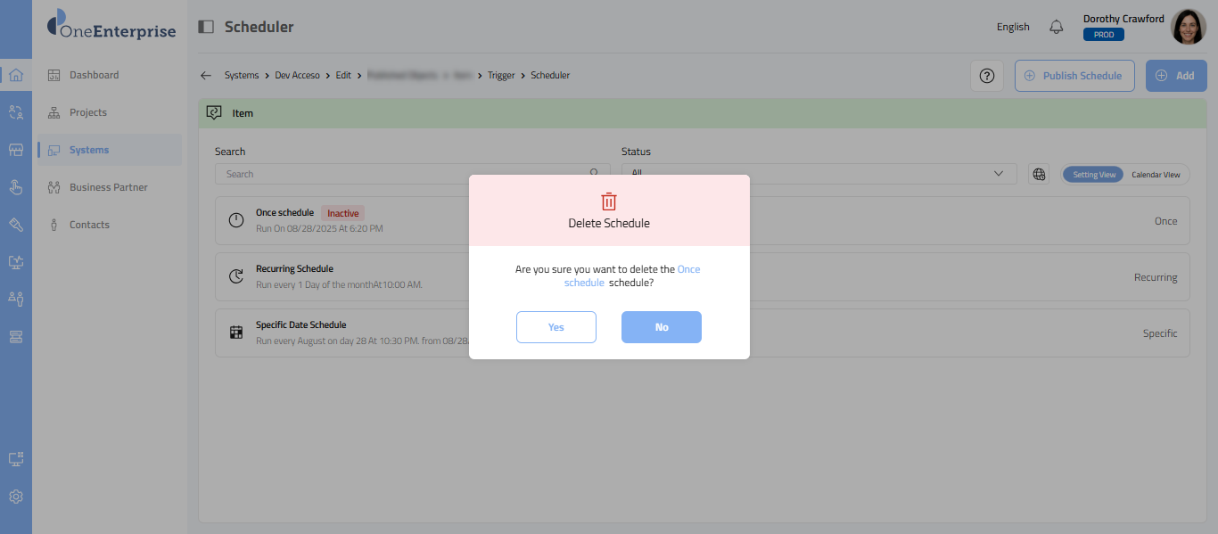 - Upon clicking the icon, the respective schedule will be deactivated.