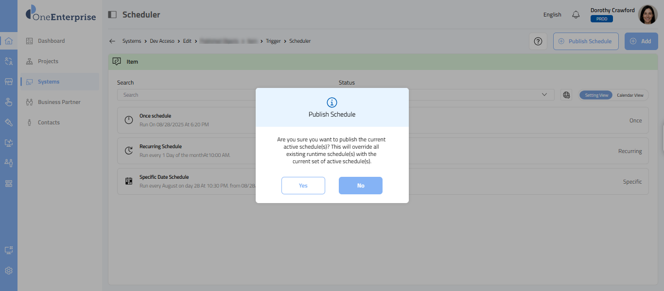 - If you click "No," the schedule will not be published, and the pop-up will be closed.