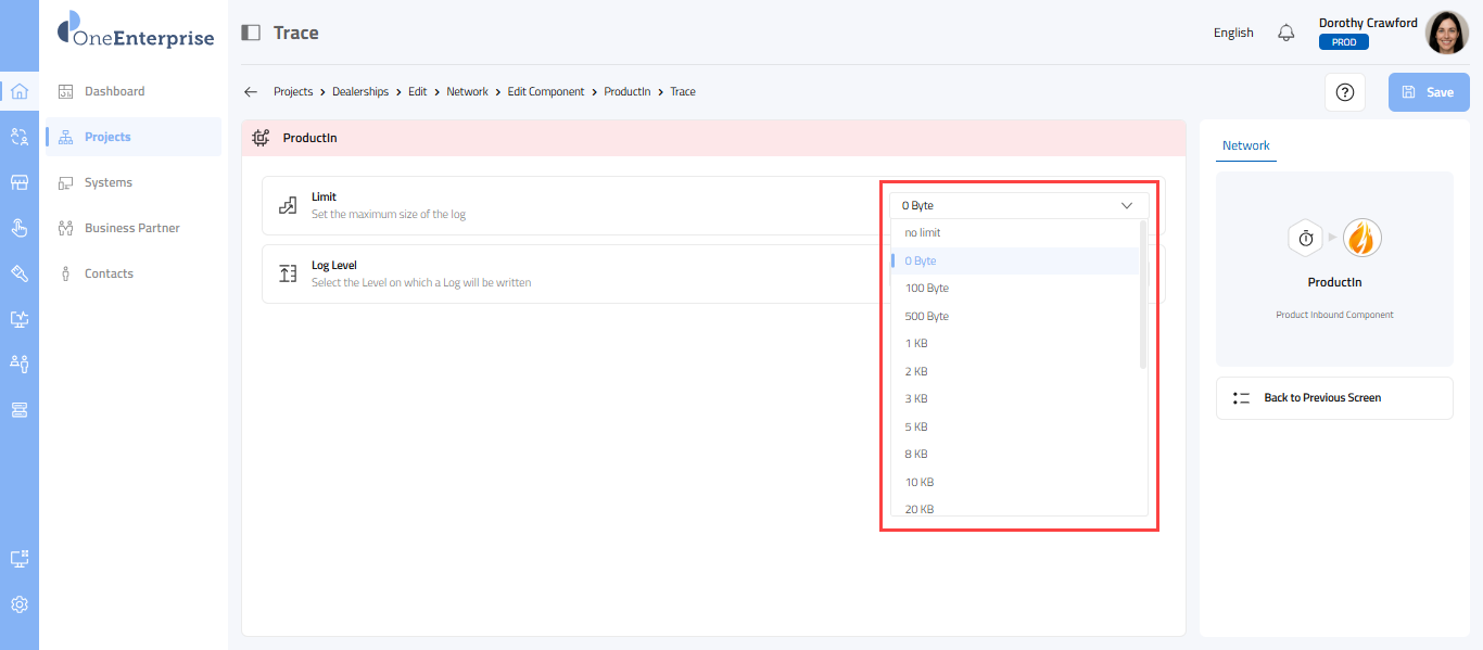 - Please note that to set the log level and its limit, you must first enable the toggle switch. Otherwise, the fields will be displayed in a disabled state.