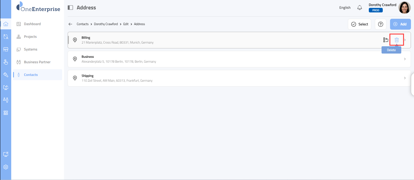 - Once you hover the mouse on the address band, the Delete icon will appear on the row.