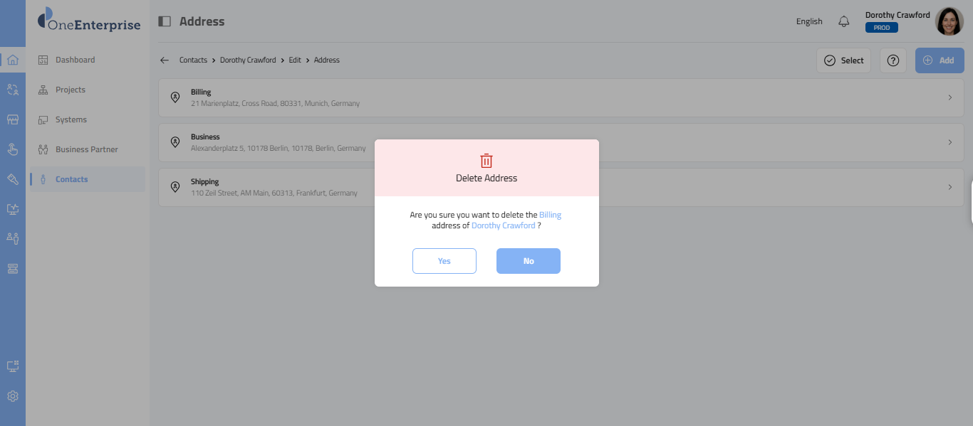 Please note that you cannot delete the address marked as the Default address. If you want to delete that address, first assign another address as the Default, then proceed to delete the original address.