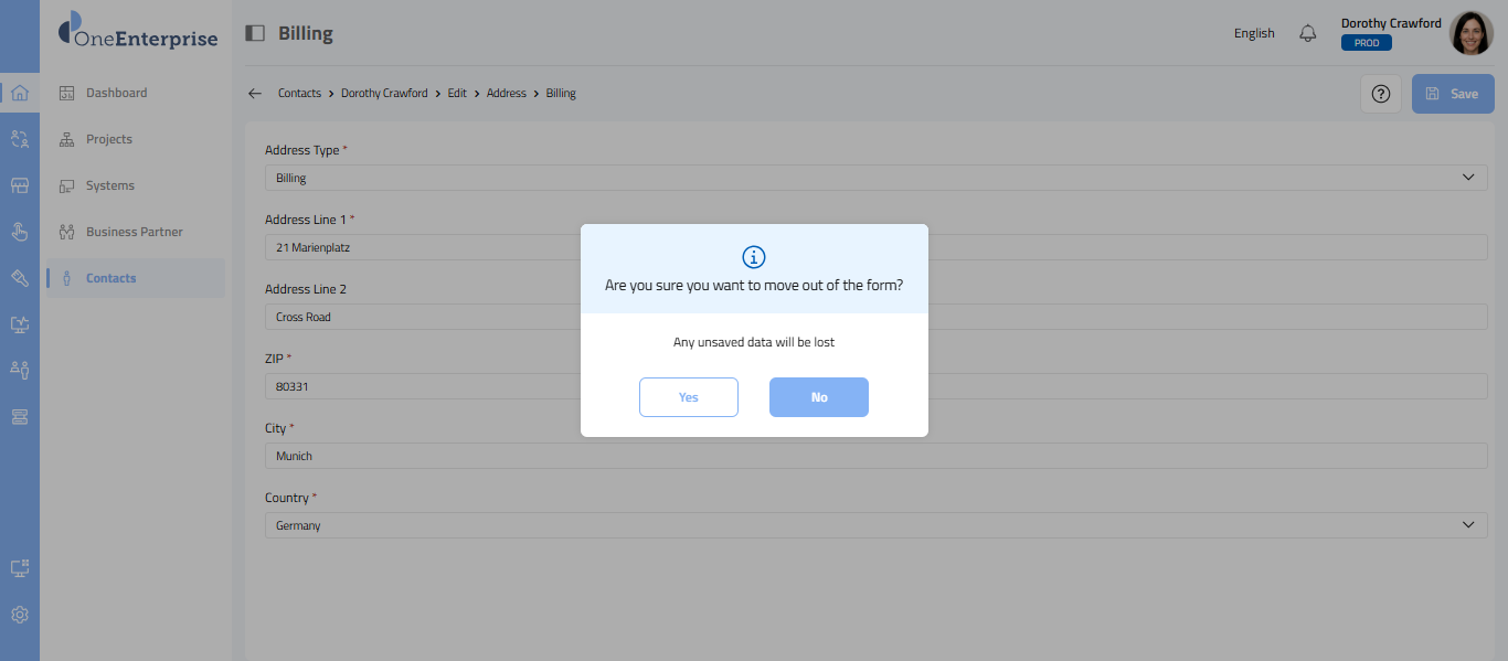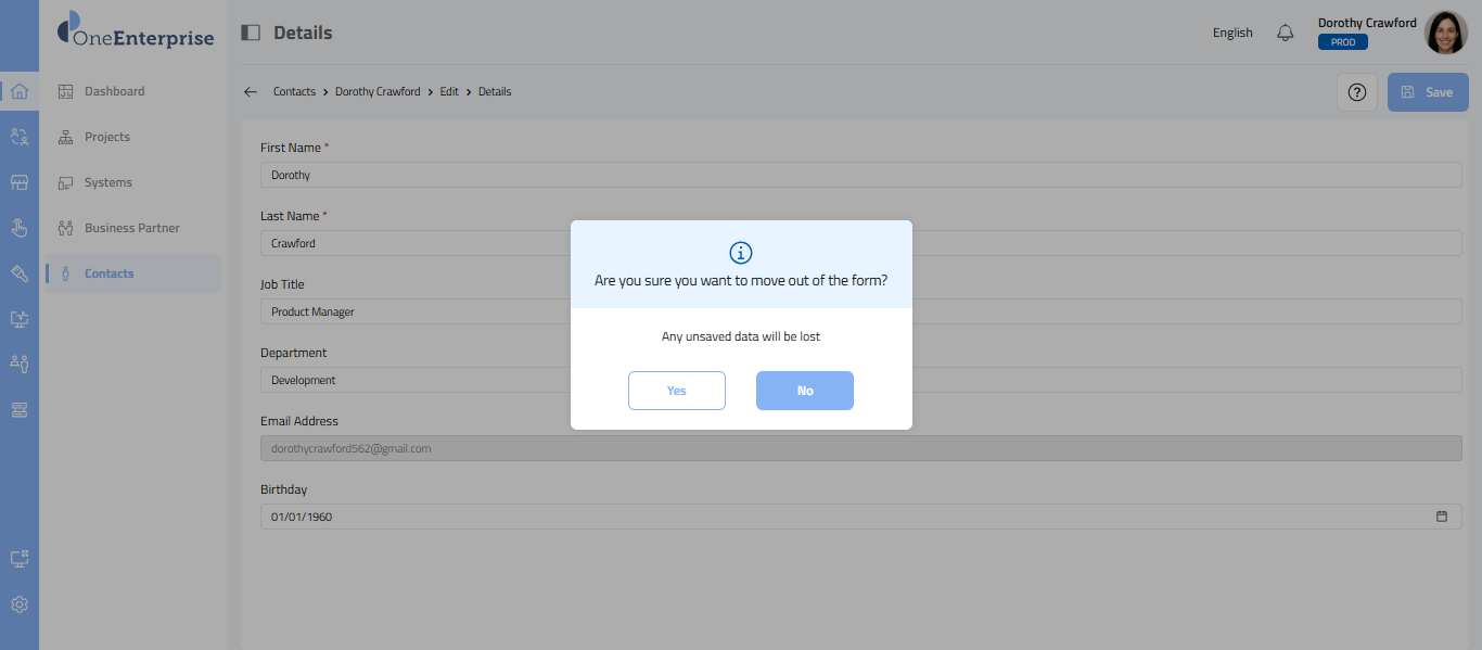 - When you try to exit the screen without saving your changes, a pop-up will appear seeking confirmation.