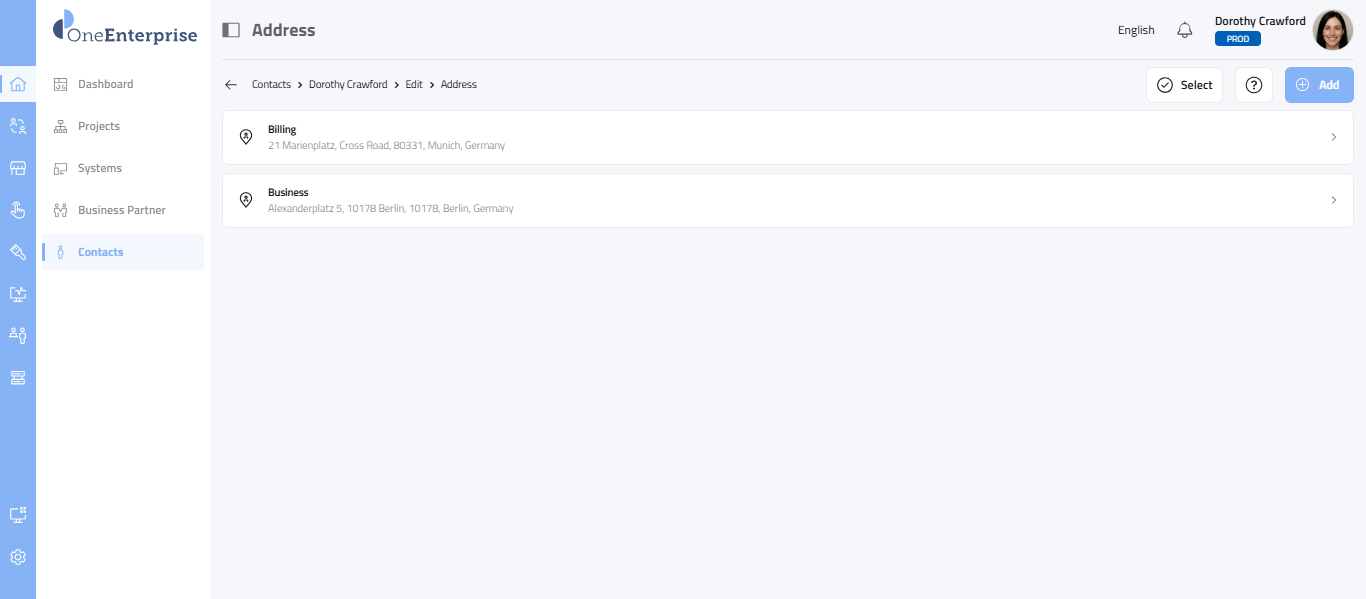 - After clicking on the Address band, the address screen will appear, displaying the list of addresses.