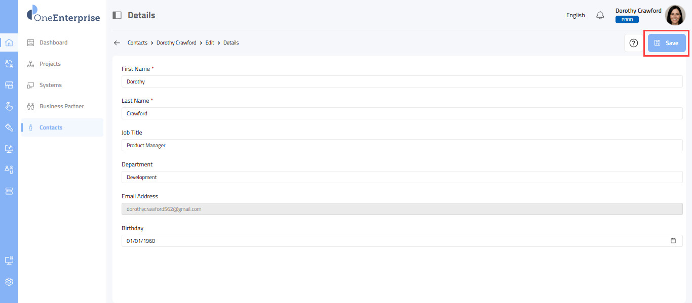 - Save: By default, the Save button will be disabled. Once you modify any of the fields, the Save button gets enabled, allowing you to save the changes.