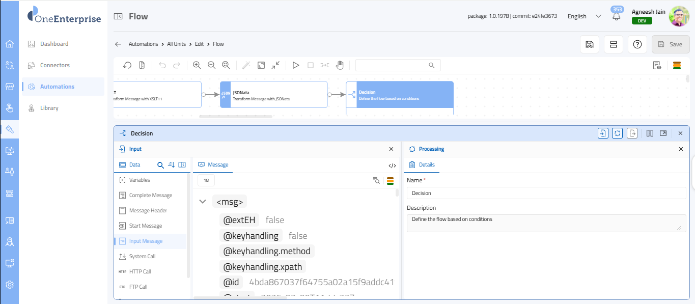 Editing this unit allows you to configure logic, expressions, and execution paths.