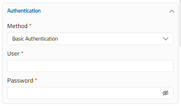 - Select Basic Authentication from the drop-down. The following fields will appear, and both fields are mandatory:
