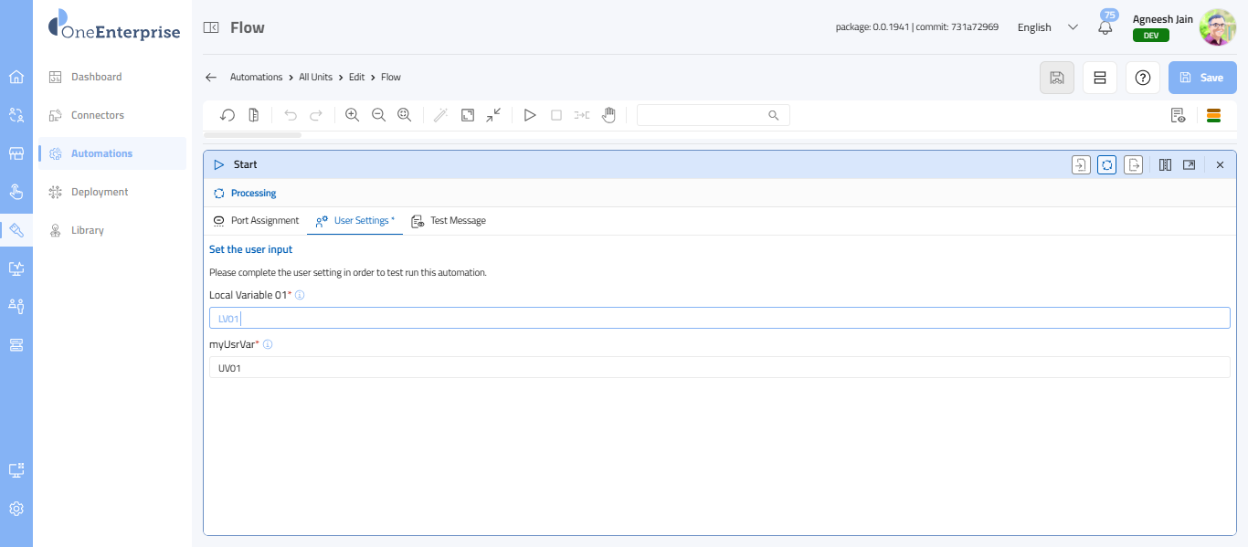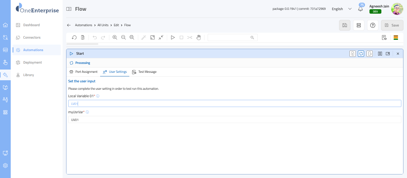 - Only one Start Unit is allowed per flow.