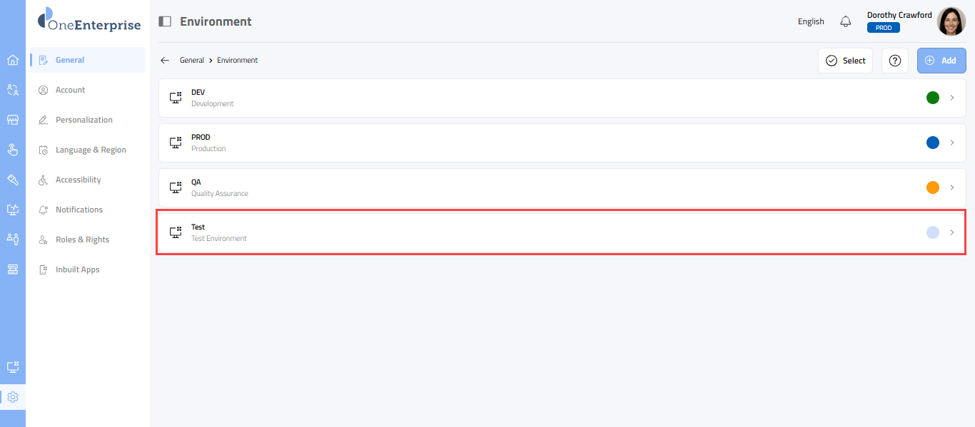 - Click on the Environment row to begin.