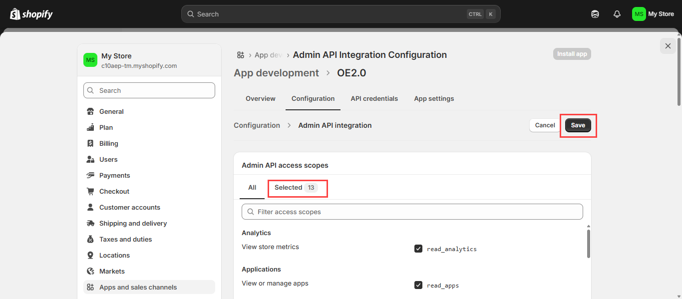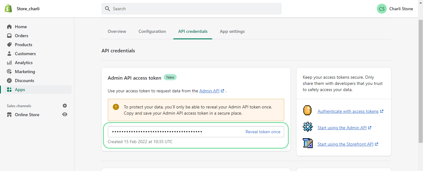 - Token (please note that the Token will be referred to as the Admin API access token in the Shopify system.)