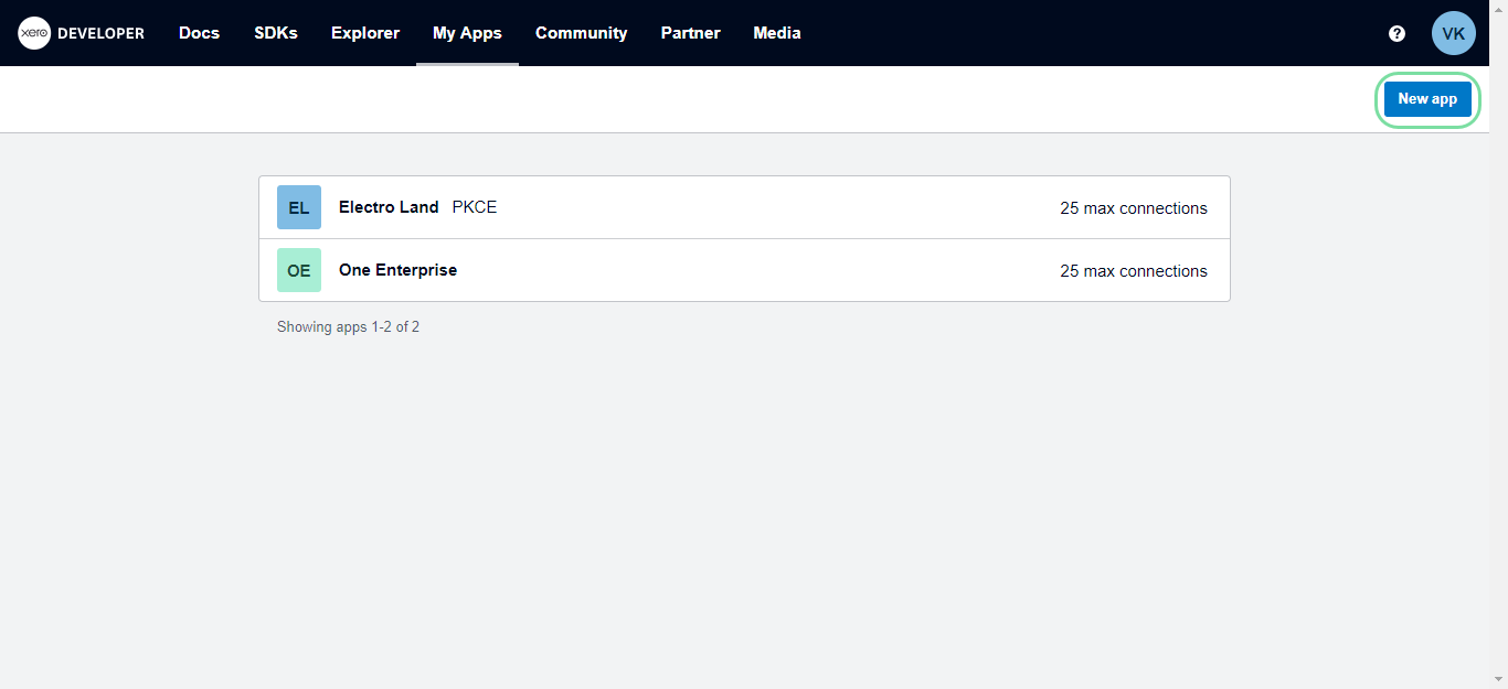 If you have not created an app yet, you can create a new app by clicking on the New app button. Then, refer to the Create App - Setup Your OAuth 2.0 app section for more information.