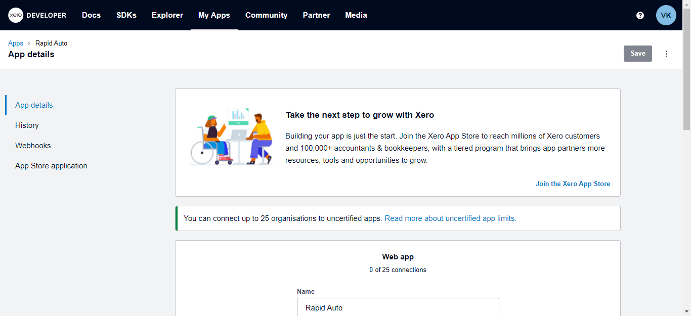 - It will redirect you to the App details page to view the Rapid Auto app details. On this page, you can view the app details and get your credentials. Refer to the above section to get your credentials.
