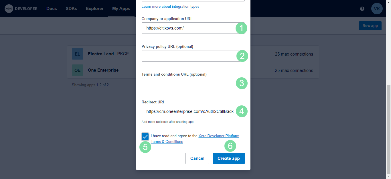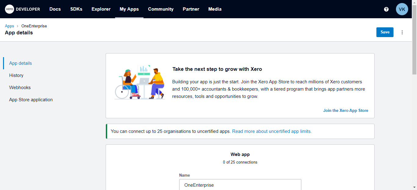 Please note that this information is provided to help you connect your Xero system to OneEnterprise. Since Xero is an external system, the process of creating an App and generating client IDs and secrets may change with application updates. OneEnterprise does not control the Xero process. If you encounter any issues, contact our support team.