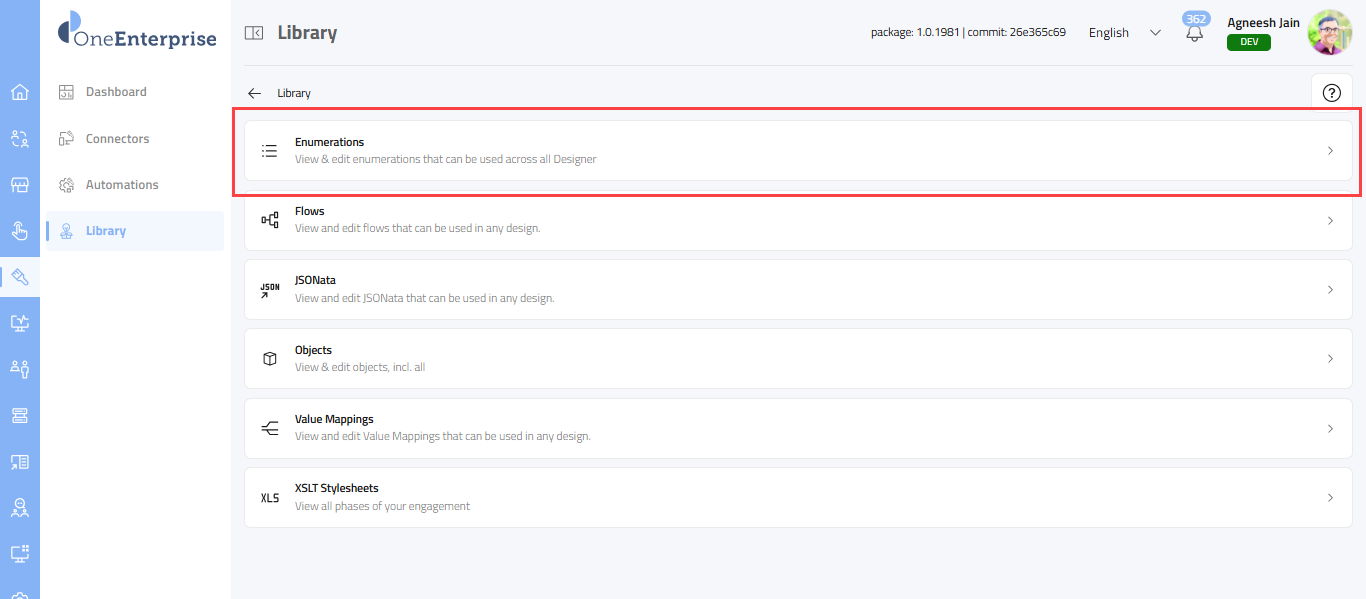 The Library module in OneEnterprise serves as a centralized hub for managing reusable assets used for integration design and data transformation. It includes the following key sections.