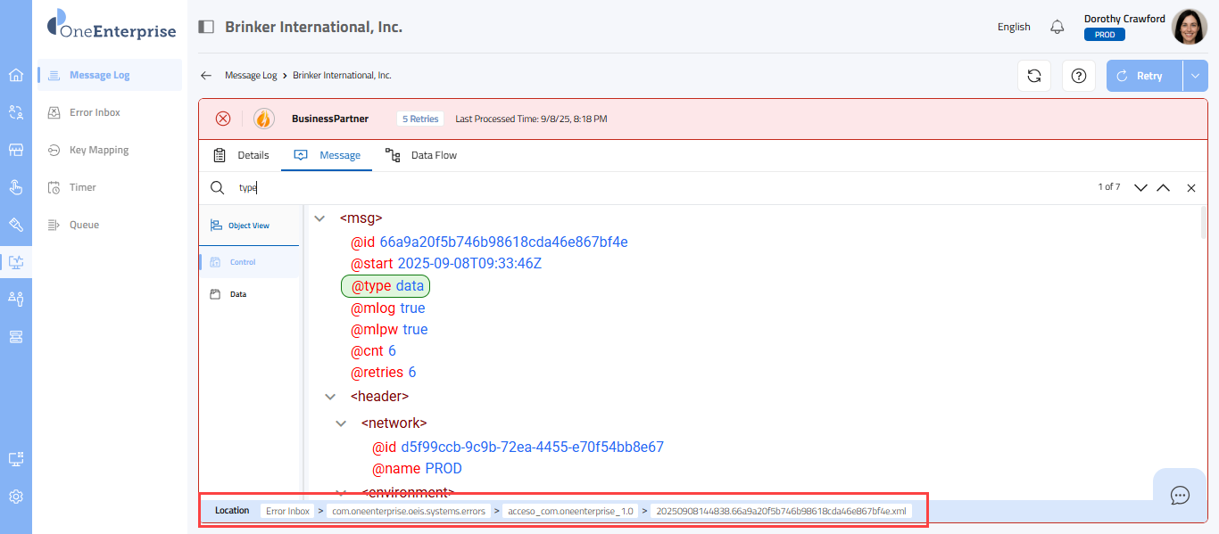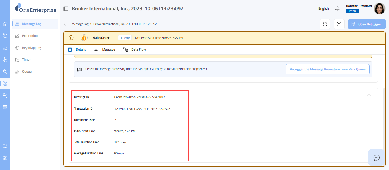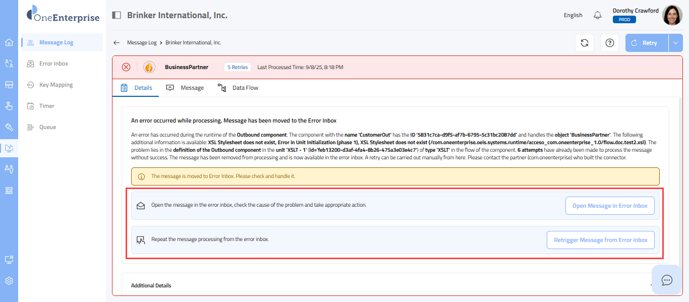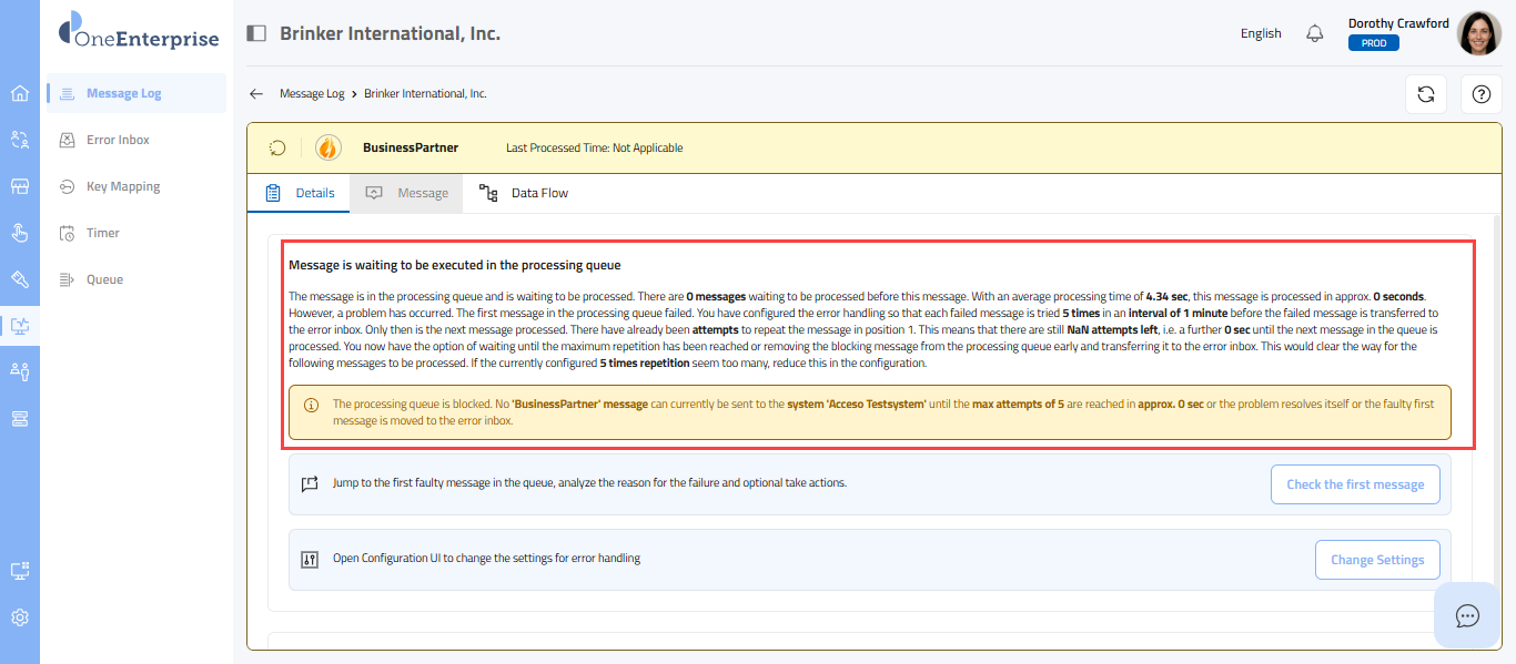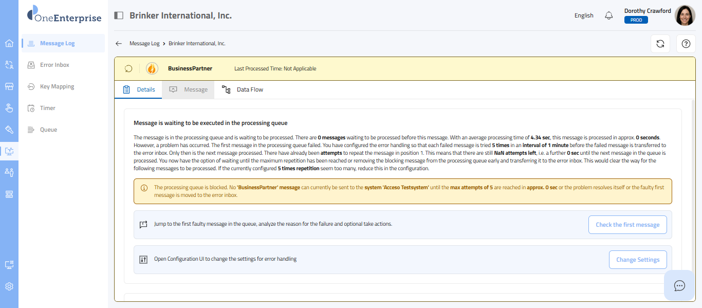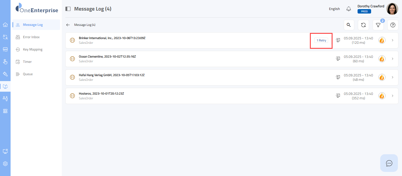 - By clicking the icon, you can attempt to process the failed message again.