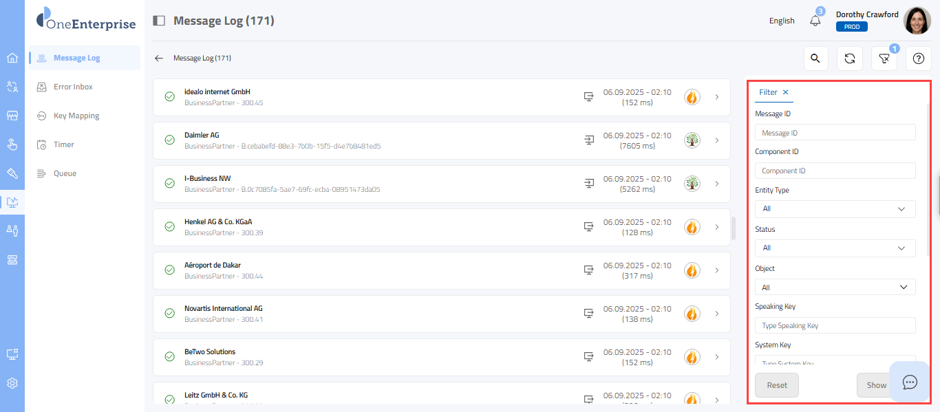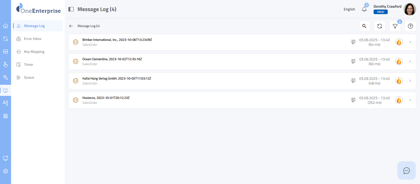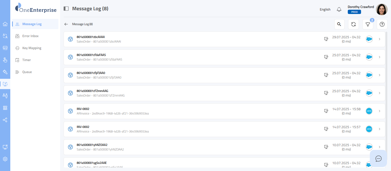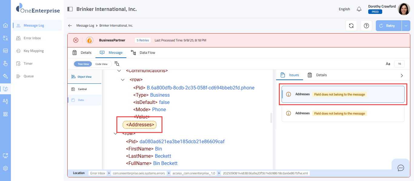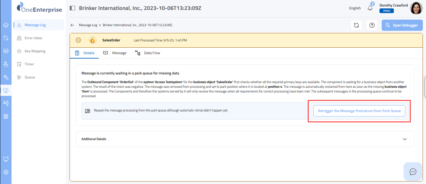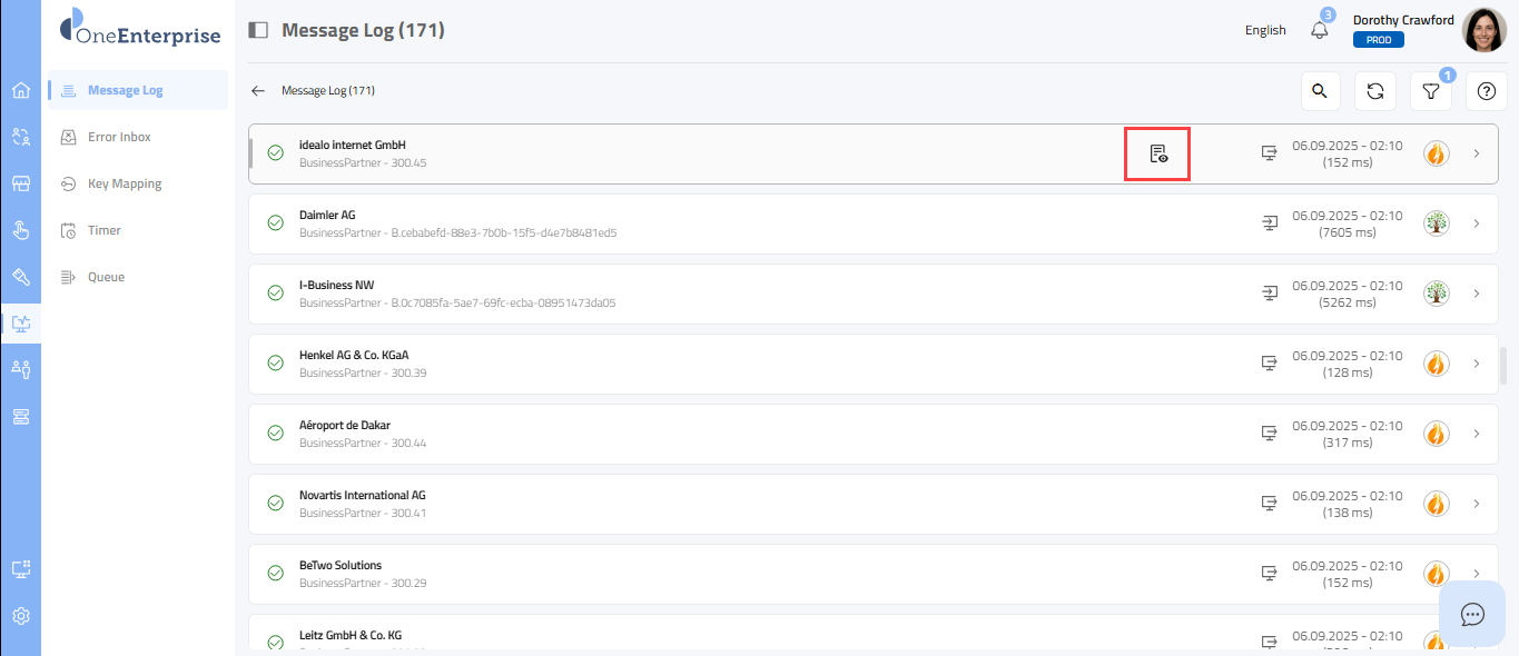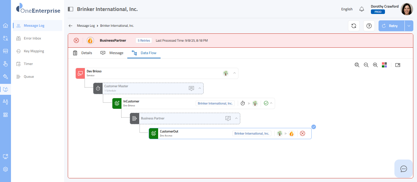 - By clicking the icon, you can attempt to process the failed message again.