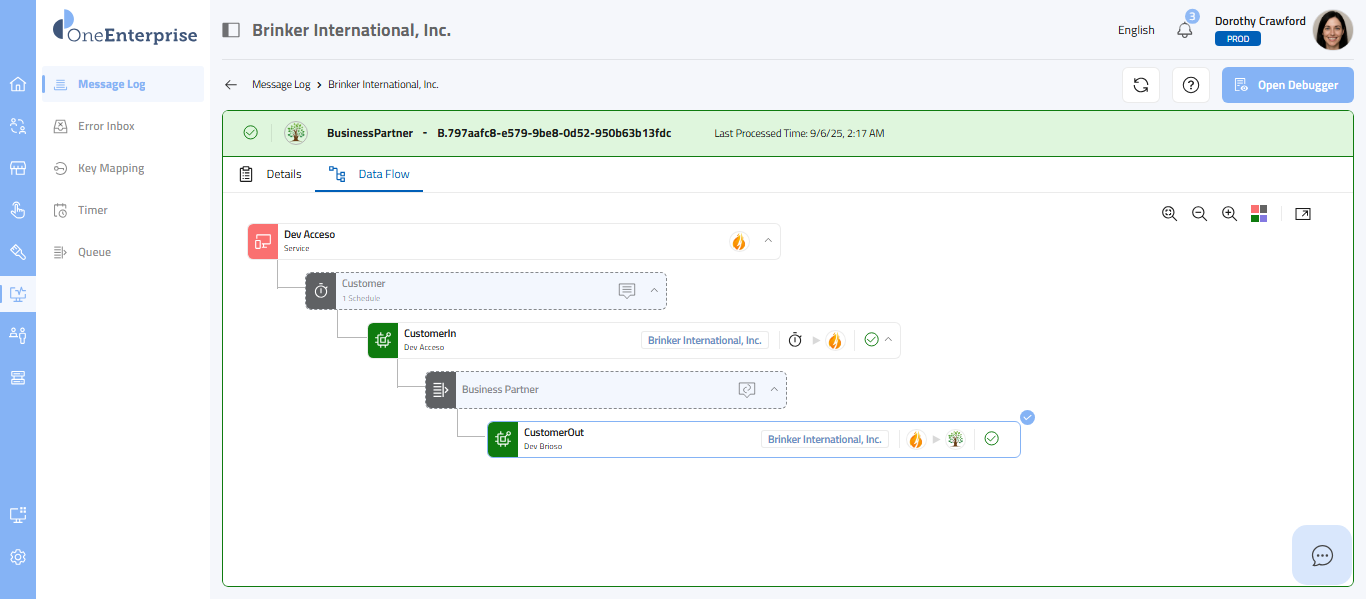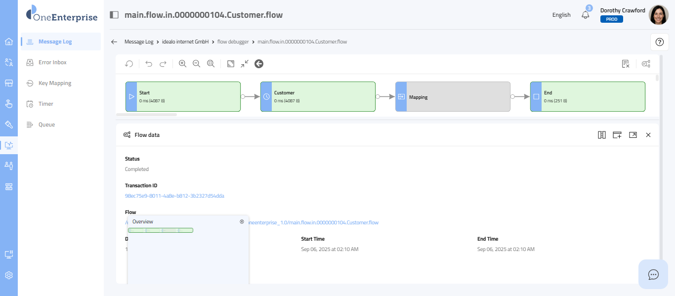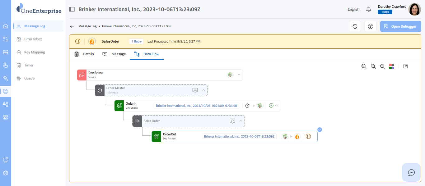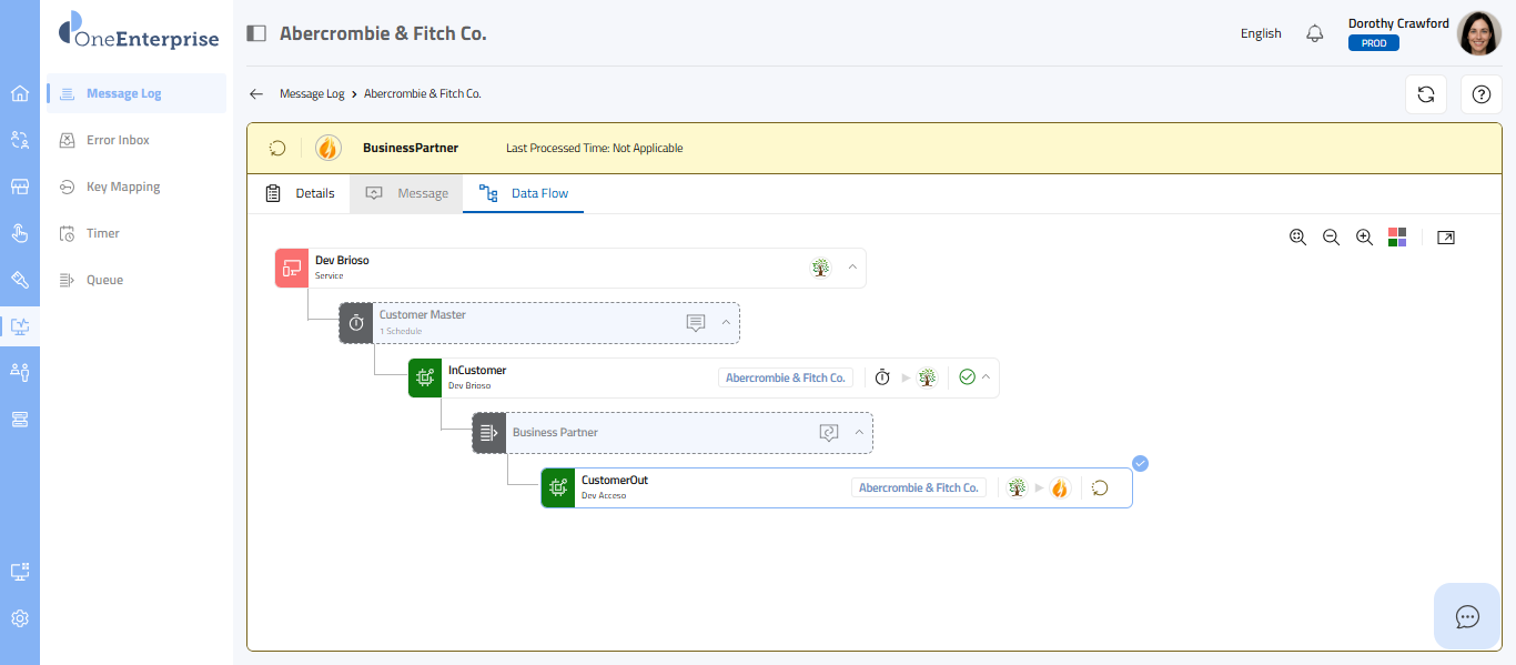 - Click on the Message tab to transition from the Details/Data Flow tabs to the Message tab. The interface will then present the corresponding message on the screen.