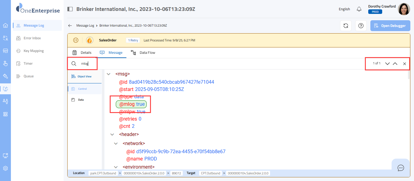 - Click on the button to open the debugger of the selected message.