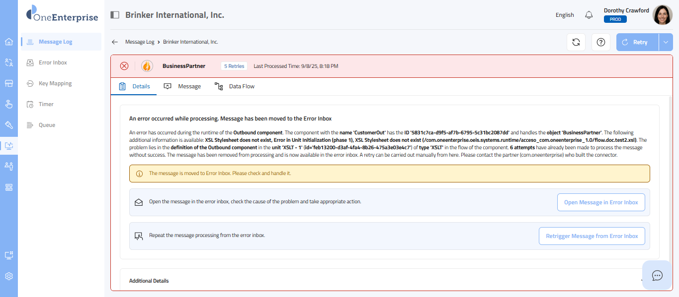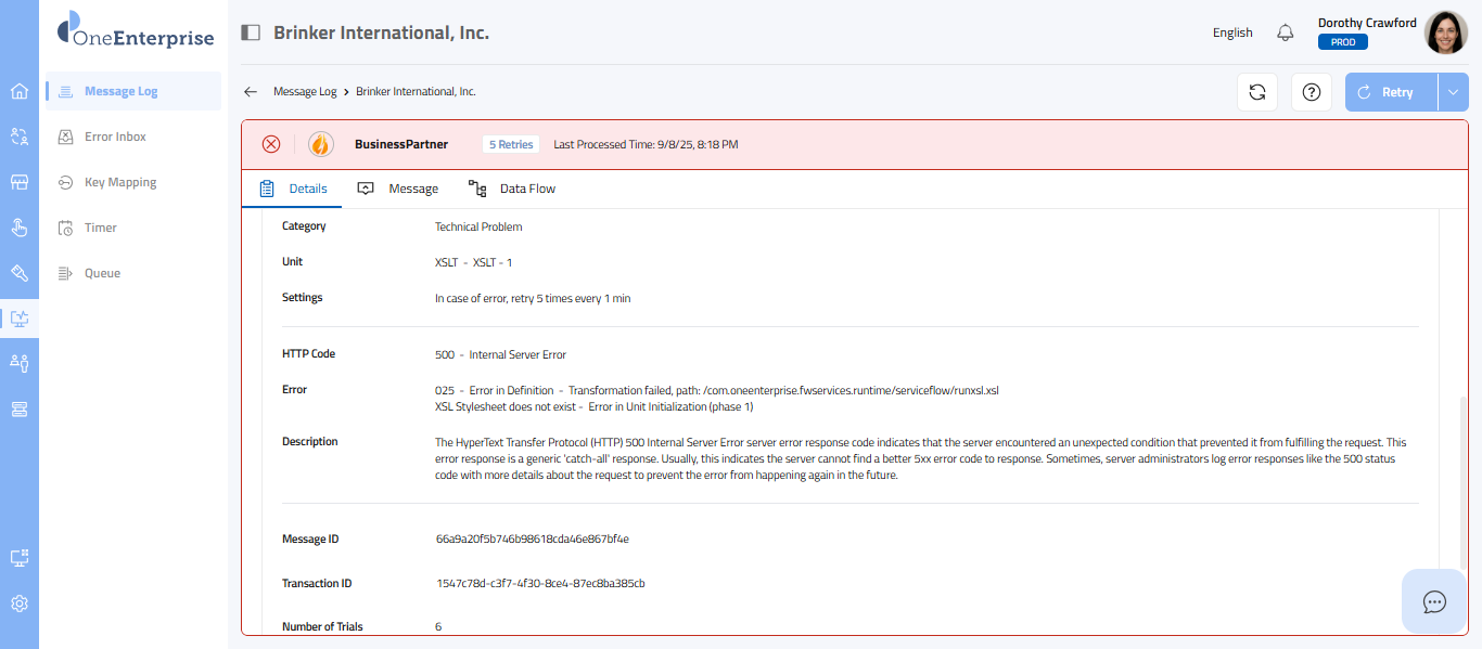 - But the message could not be processed, hence a Retry flag has been added to the message.