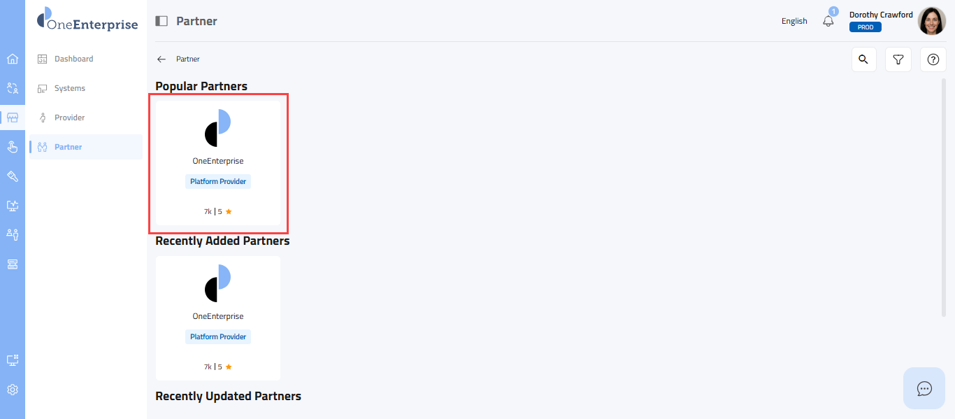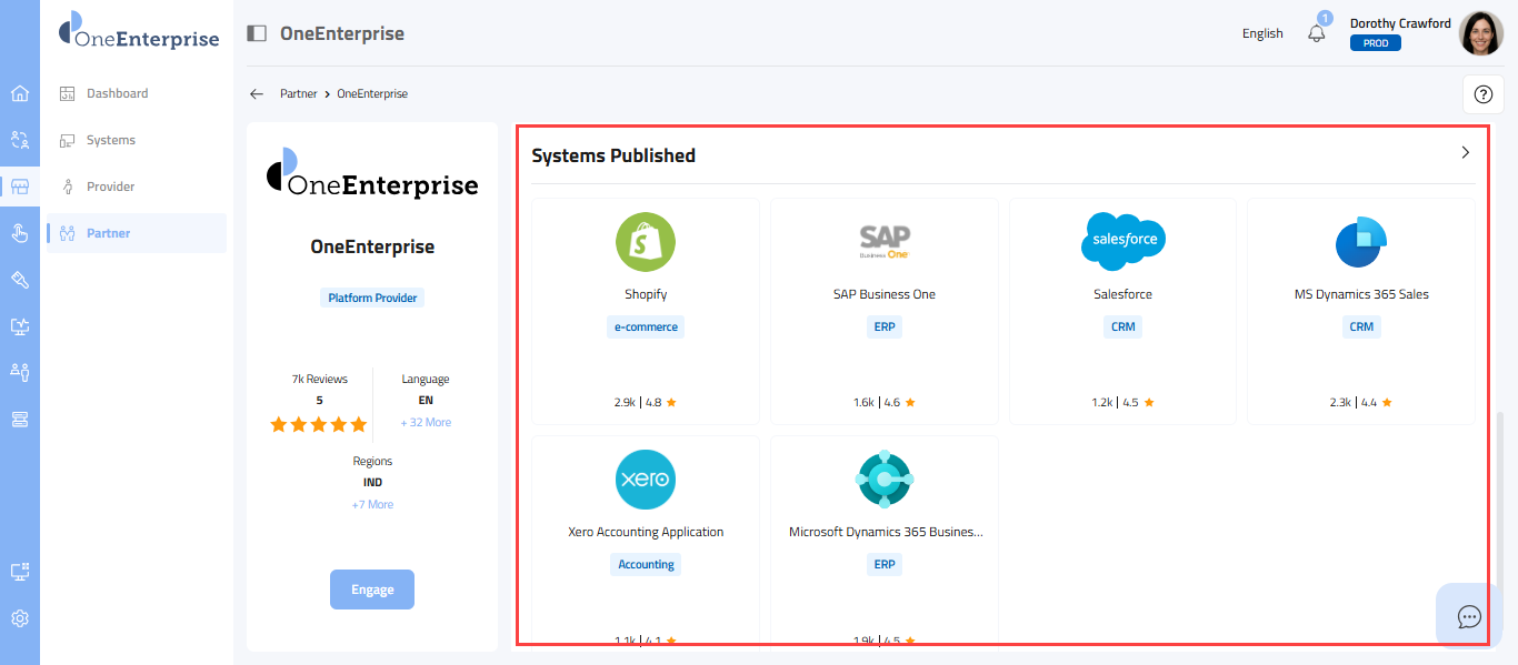 - This section provides the list of systems published by the selected partner.