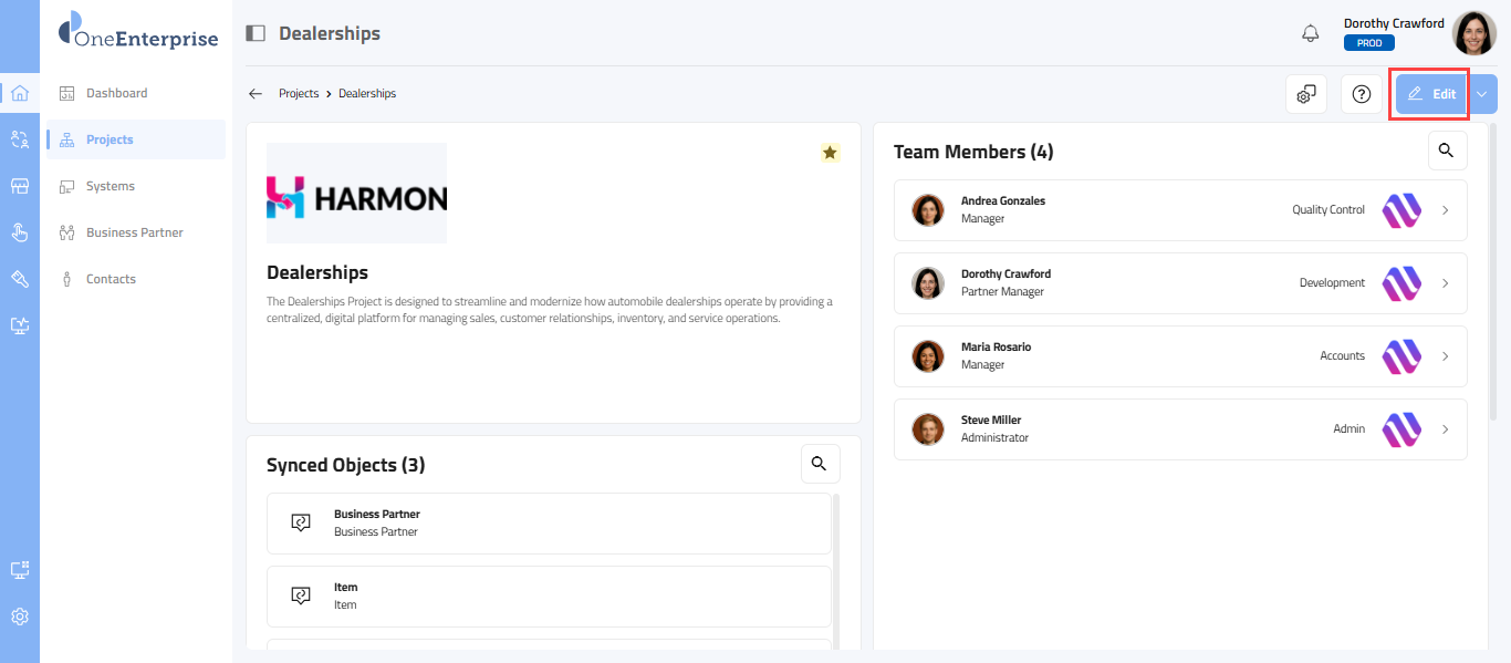 - Option 1: Click on the 'Entity' section or click on the 'Edit' icon (context menu) on the 'Project' card