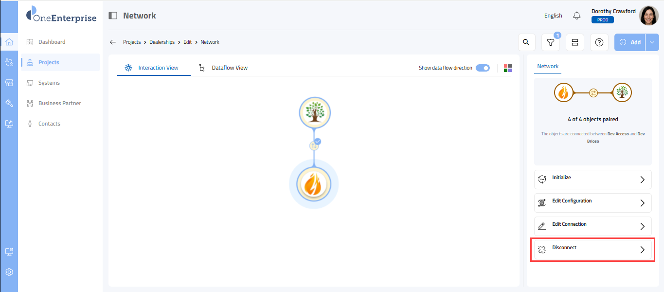The tab also provides various action options, allowing you to modify connection details as needed. If necessary, you can disconnect the connection entirely. This flexibility enables efficient management of relationships among entities within the network.