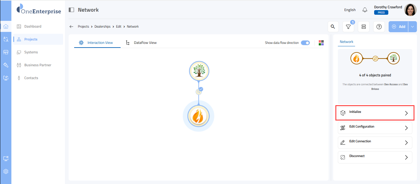 This section provides detailed guidelines on how to initialize and synchronize data between your connected systems. Once you are on the interaction view and click on the connection between any of the connected systems, you will see the Initialize band on the Network tab. Clicking the button will take you to the initialization screen, where you can view the list of configured objects. If you are initializing the object for the first time, you will notice the 'Not started' flag on the object. To initialize any object, click on it and follow the steps. The process involves synchronizing the master data of objects between the connected systems.
