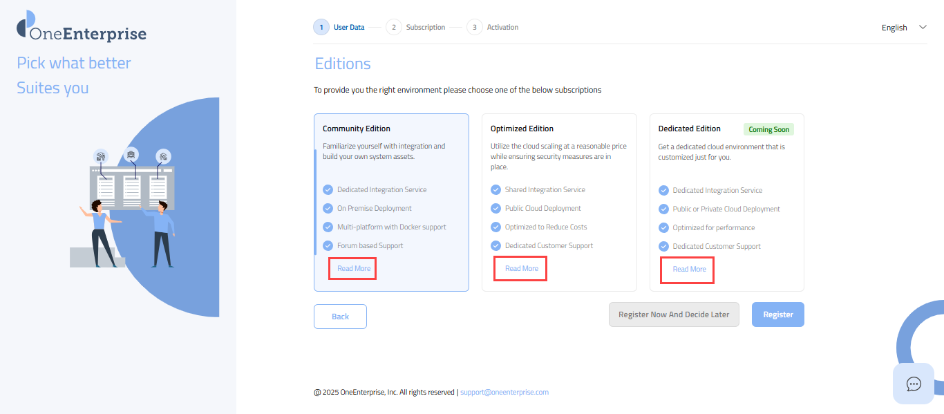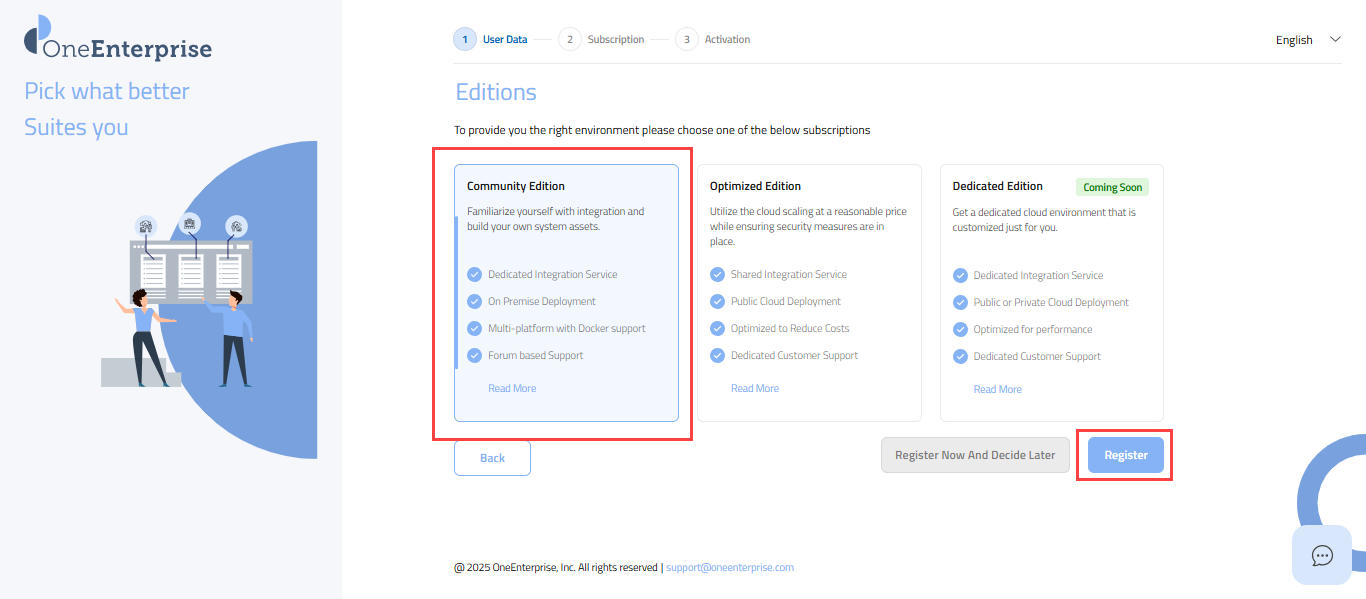 - The registration includes choosing a Data Center region and selecting an Edition (Community or Enterprise), depending on your needs.