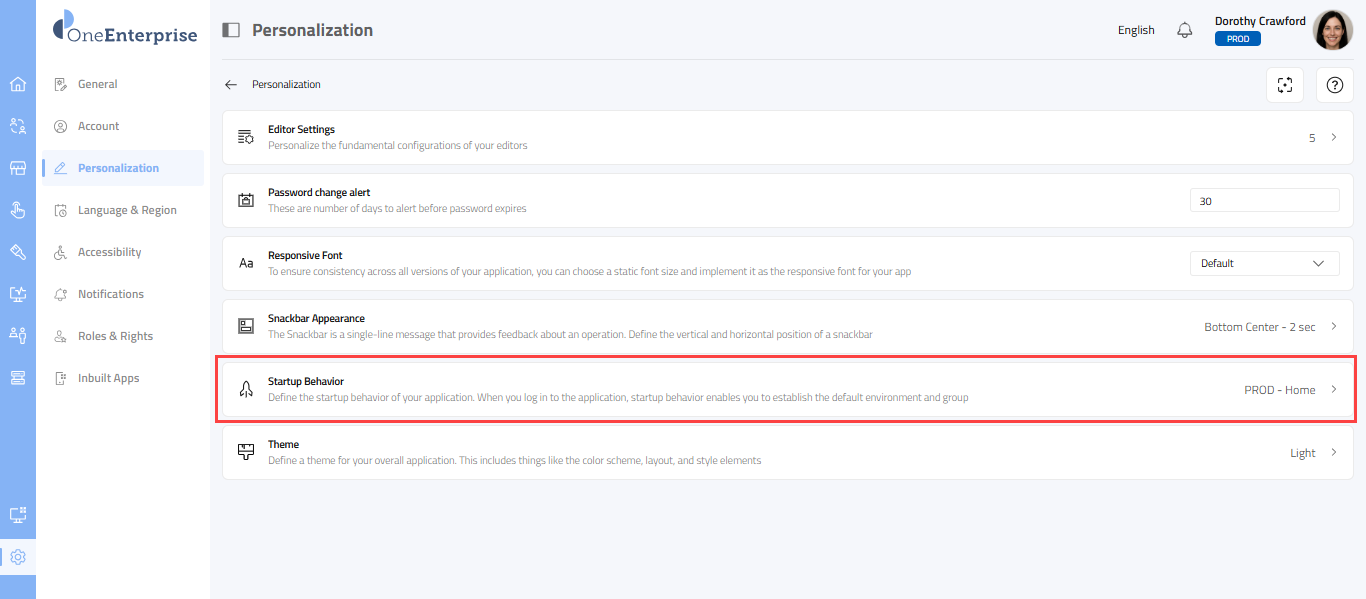 By setting up the startup behavior, you can determine how the application behaves when you launch it. For instance, if you have already set your environment and group menu, the application will open with these settings by default every time you launch it.